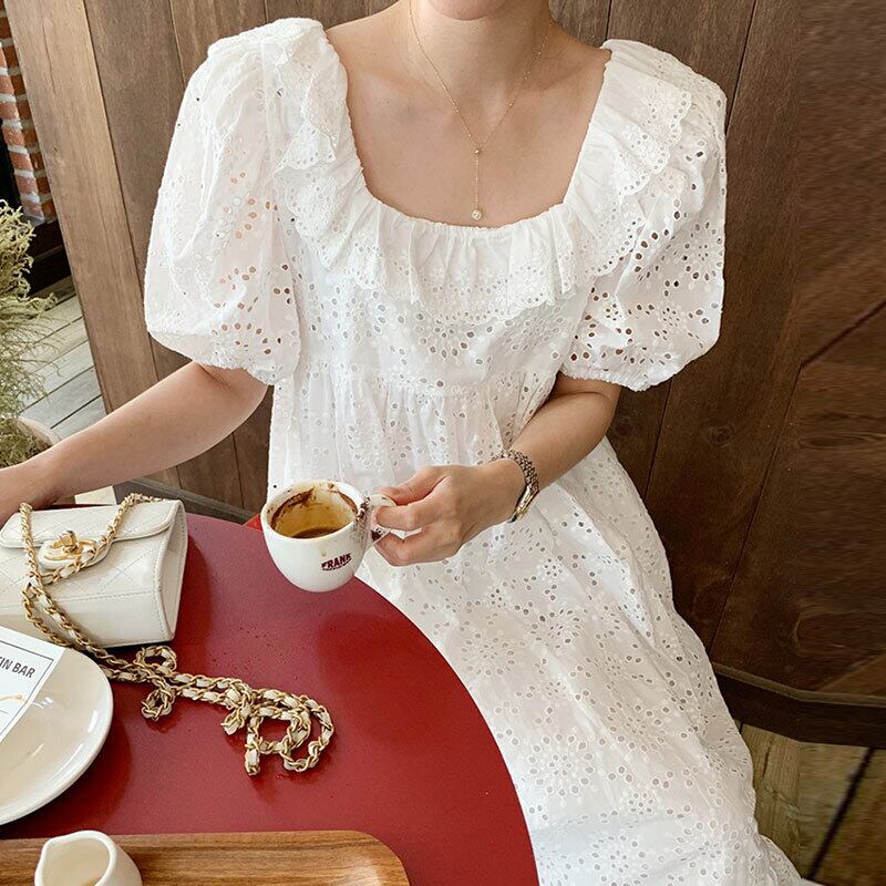 ルーズロングレースドレス レディース エレガント スクウェア ステッチ 7/20 mi4639396530261