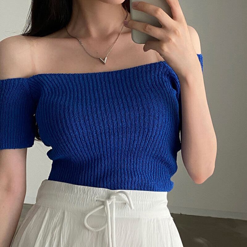 サマーブルーカラースリムリブセーター レディース 夏物 7/20 mi4611004838724