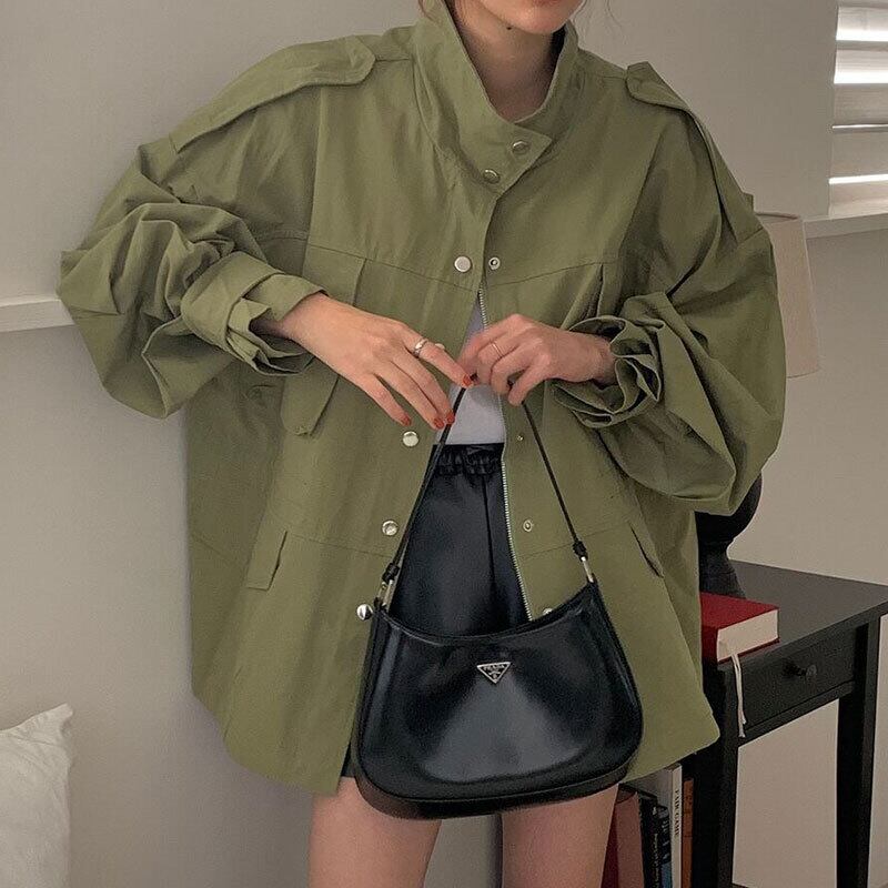 オータムスタンダードカラージッパーコート ロング レトロ 秋物 ポケット多め マルチポケット 7/20 mi4693773688898