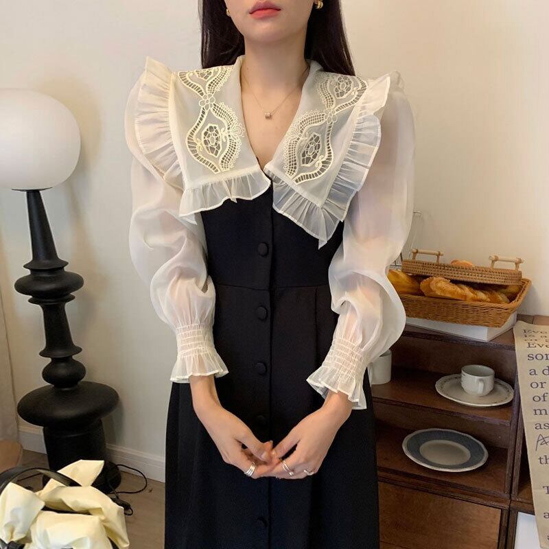 オータム刺繍レースカラードレス エレガント 秋物 ステッチ 7/20 mi4626542274800