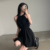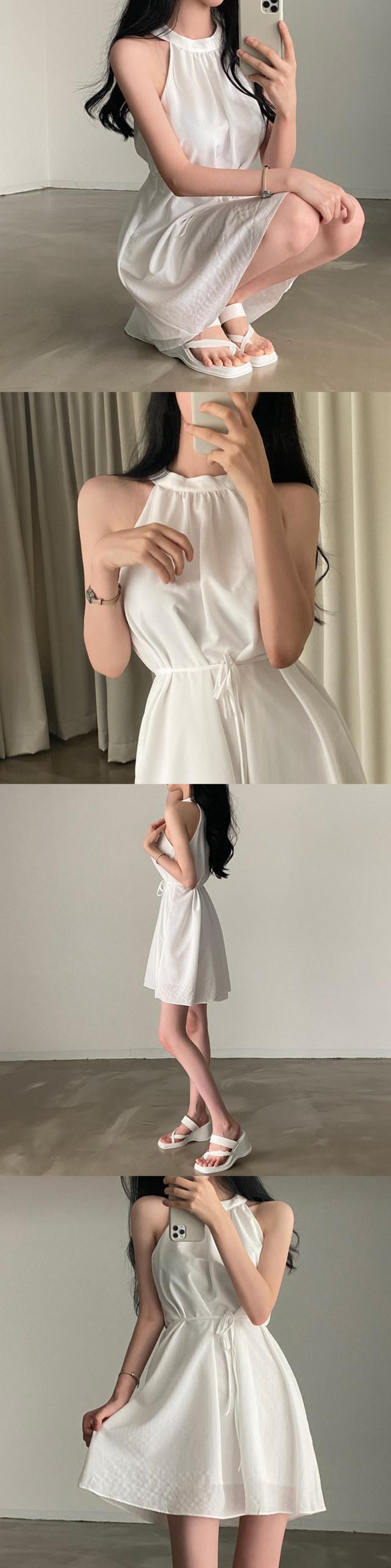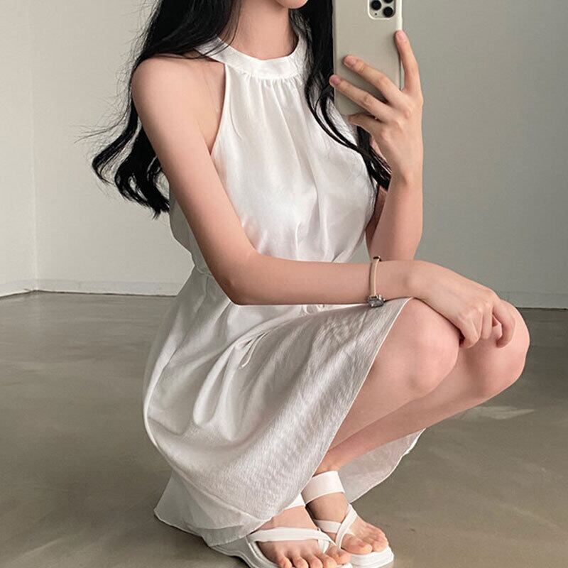 サマーホルターラウンドネックレースウェストノースリーブドレス 夏物 Oネック 7/20 mi464485602353