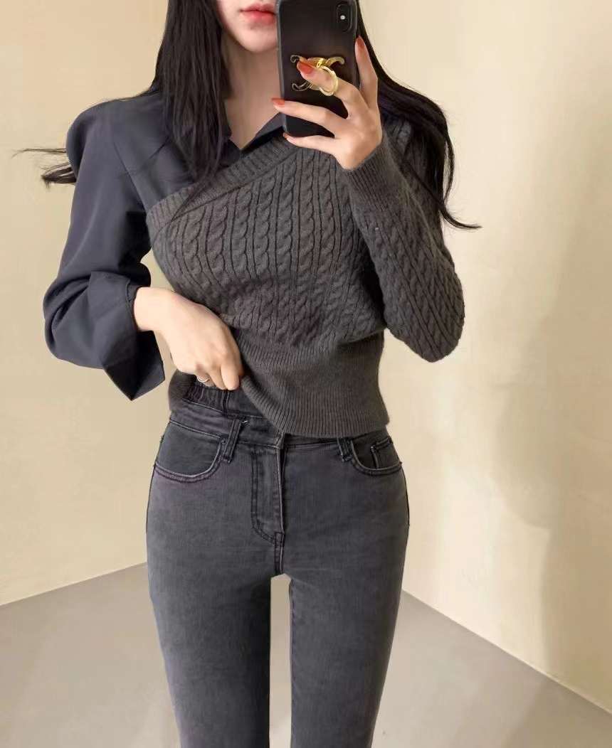 オータムシャツ パターンプルオーバー ニットセーター レディース 秋物 ステッチ 7/20 mi4610158491135