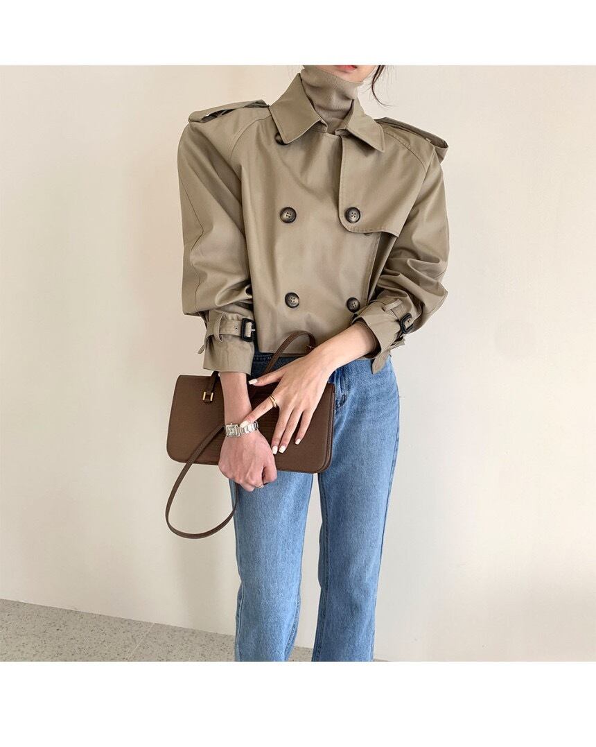 オータムスタンダードカラーダブルブレストルーズショートジャケット レディース ロング レトロ 秋物 7/20 mi4647094855848