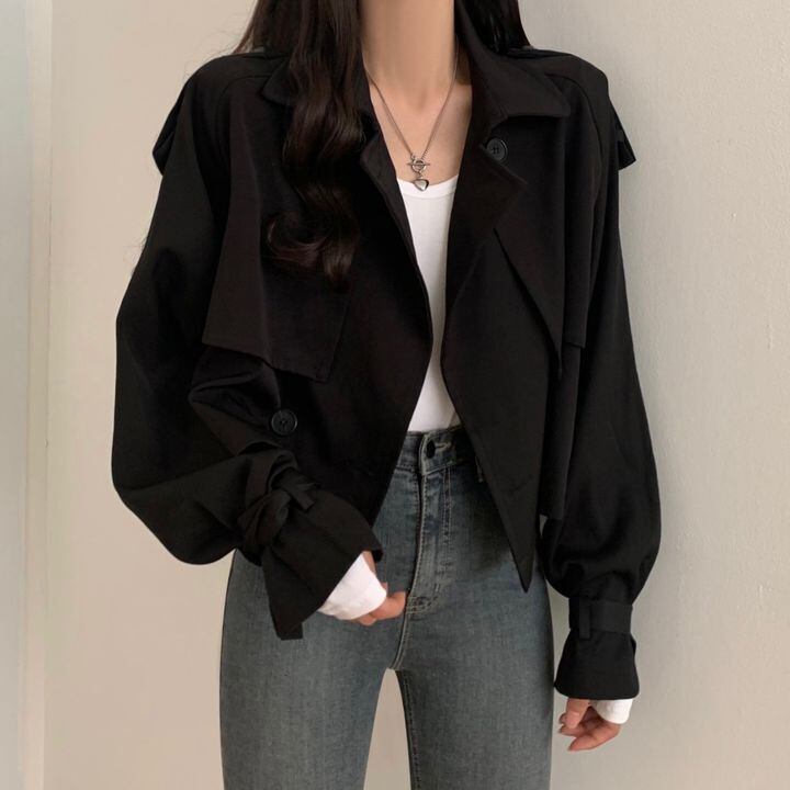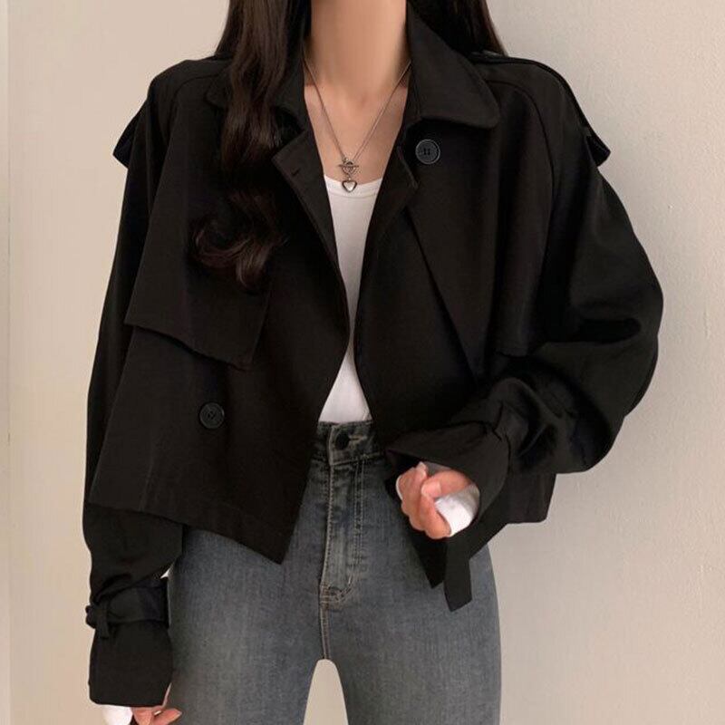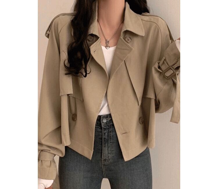 オータムスタンダードカラーダブルブレストルーズカフショートコート レトロ 秋物 7/20 mi4684223682157