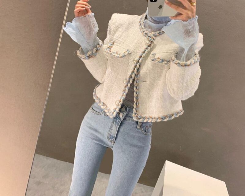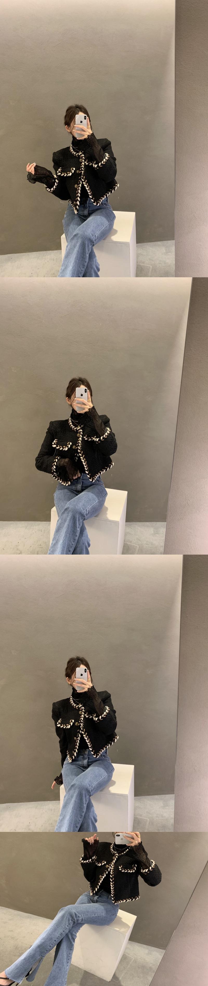 スタンダードラウンドネックカラールーズツィードショートコート ロング レトロ Oネック 7/20 mi4628313979454