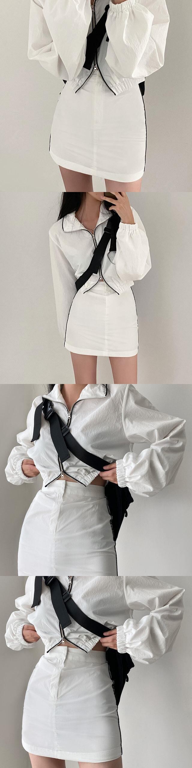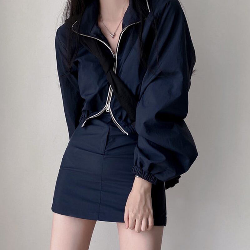 オータムダブルジッパージャケット ハイウェストウェストスカート ロング 秋物 7/20 mi4673645517348