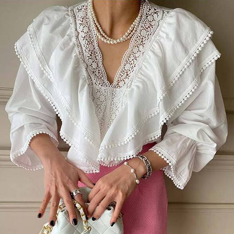 Vネックレースシャツ オータムトップス 秋物 ステッチ 7/20 mi4644810284944