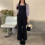 オータムラウンドネックバックレスシャツ オーバーオール ロング 秋物 Oネック 7/20 mi4683602334827