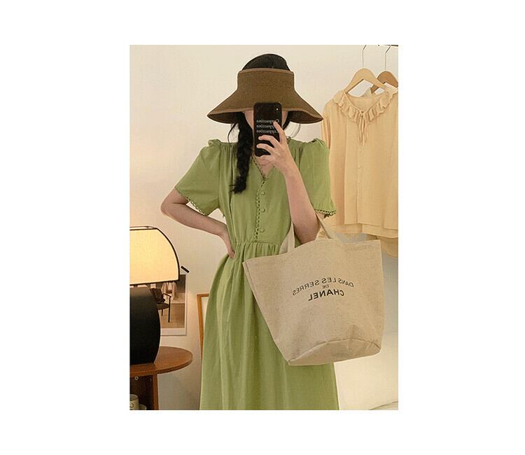 サマーVネックレースルーズカジュアルソリッド カラードレス エレガント 夏物 ソリッドカラー 7/20 mi4637612450012