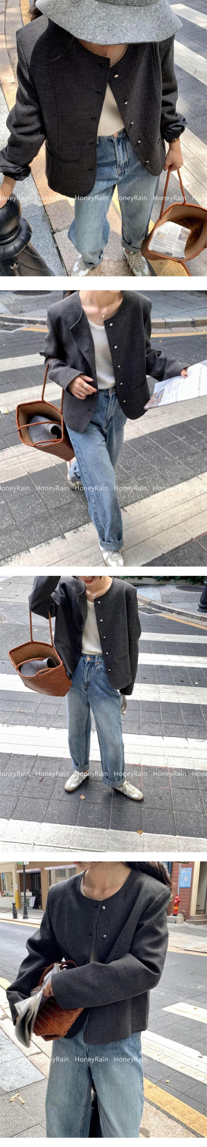 オータムラウンドネックトップス スタンダードゴールドボタンショートコート レトロ 秋物 Oネック 9/19 秋冬 オータム ウインター ナチュラル mi4655205248632
