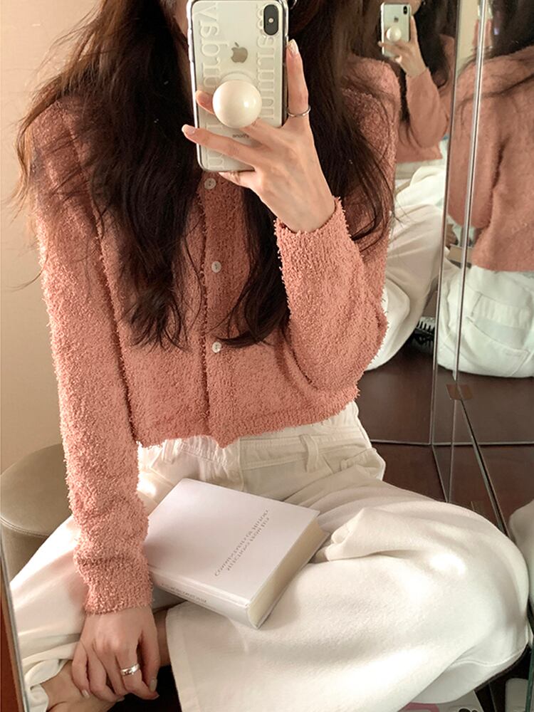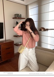 オータムルーズラウンドネックトップス セーター ロング ピンク 秋物 Oネック 9/19 秋冬 オータム ウインター ナチュラル mi4681923963763