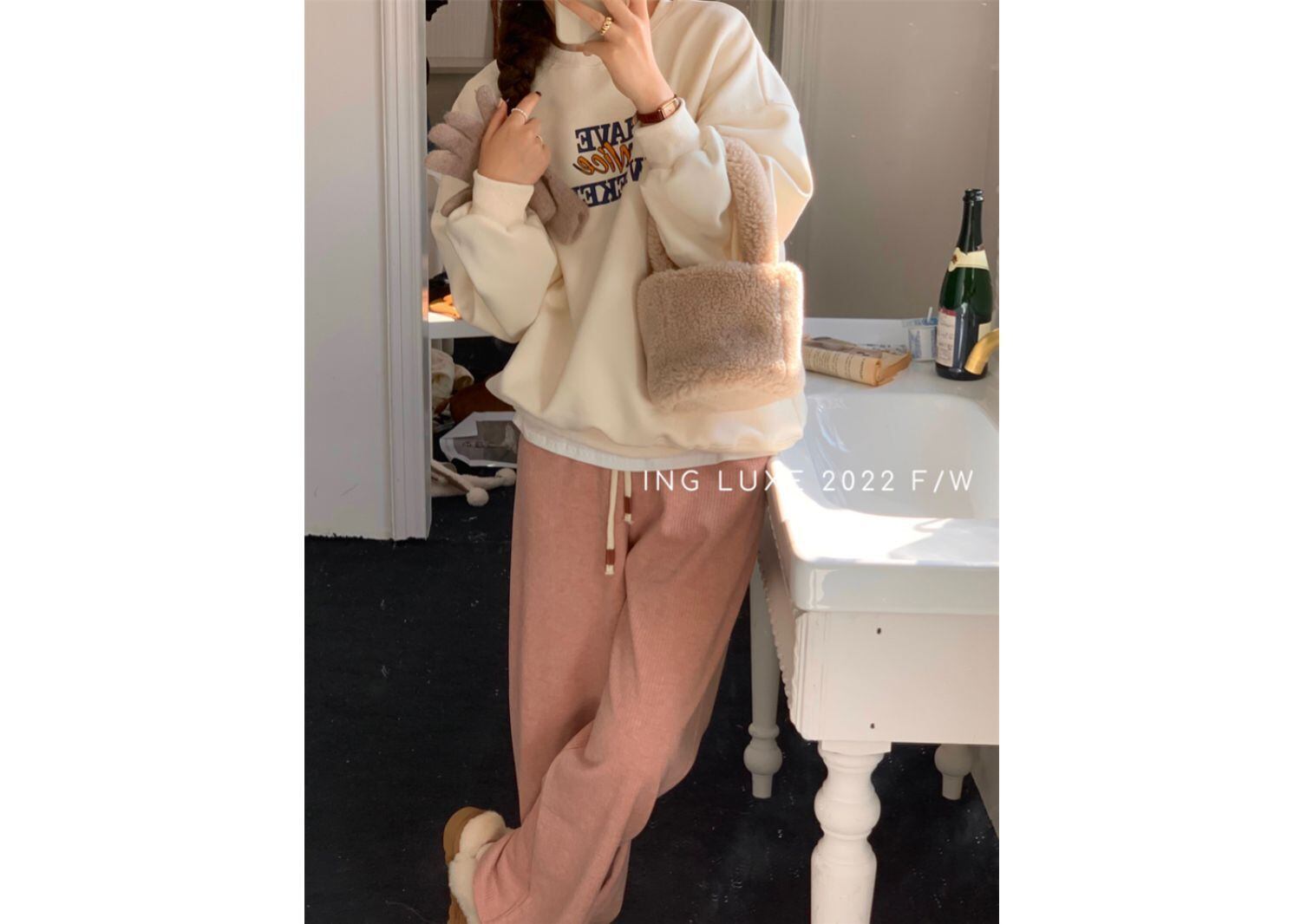 オータムルーズラウンドネックプルオーバー トップス カジュアルプリントセーター 秋物 Oネック 9/19 秋冬 オータム ウインター ナチュラル mi4682924708832