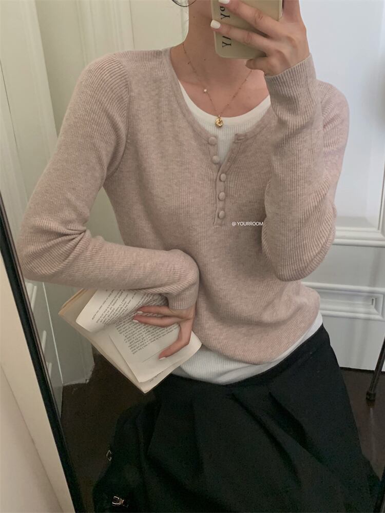 オータムラウンドネックスリムプルオーバー トップス ニット 秋物 Oネック 9/19 秋冬 オータム ウインター ナチュラル mi4684854203128