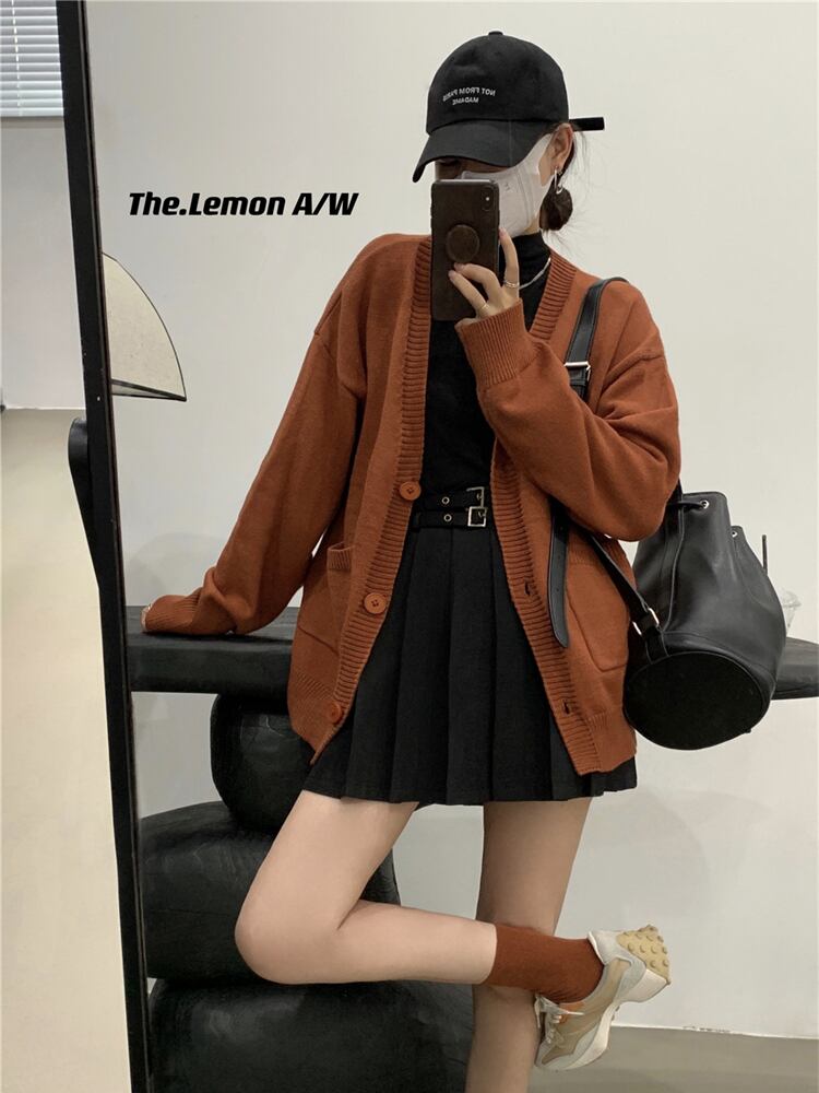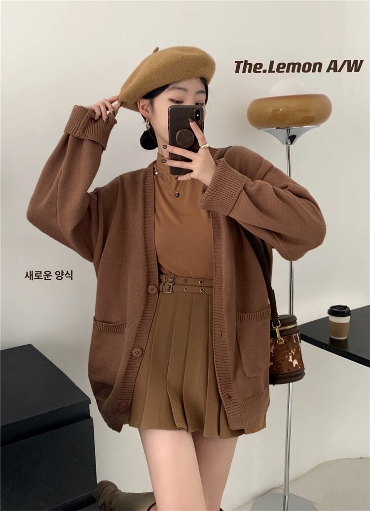 オータムウィンタールーズVネックグレーセーター カーディガン ロング 秋物 冬物 9/19 秋冬 オータム ウインター ナチュラル mi4642215195114