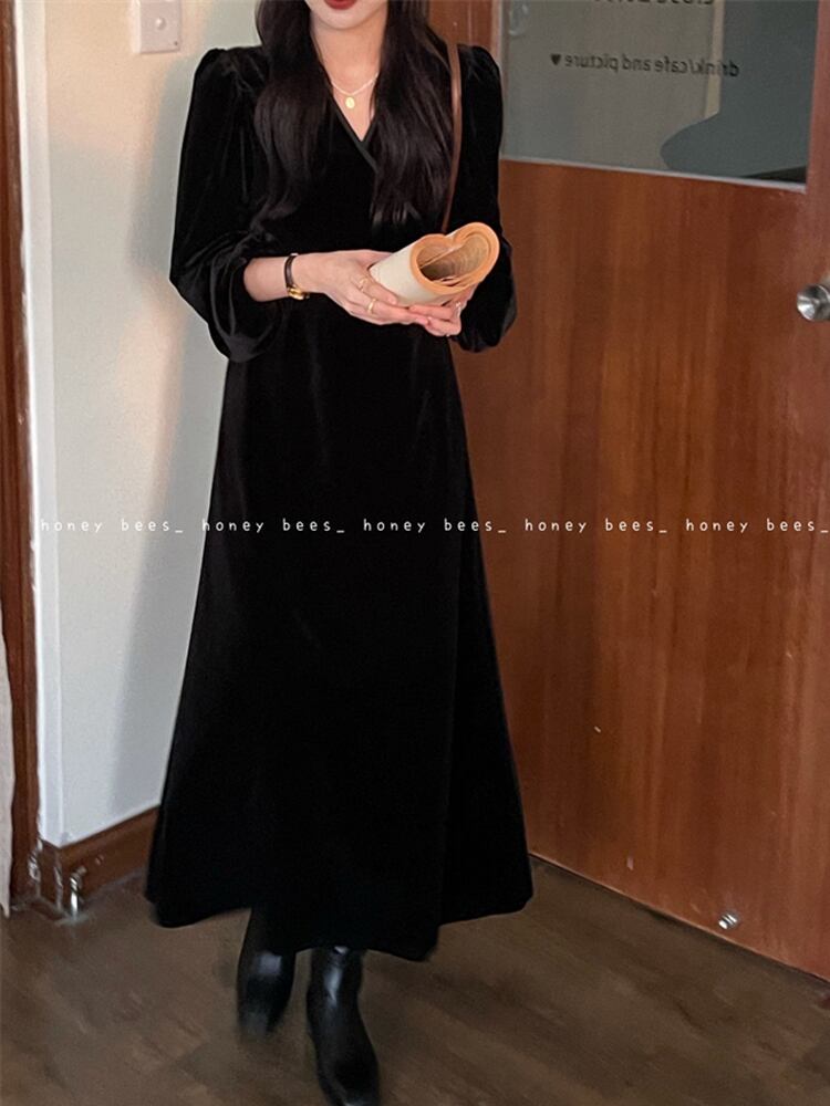 オータムブラックスリムミディスカート ワンピースベルベットドレス エレガント 秋物 9/19 秋冬 オータム ウインター ナチュラル mi4616895374325