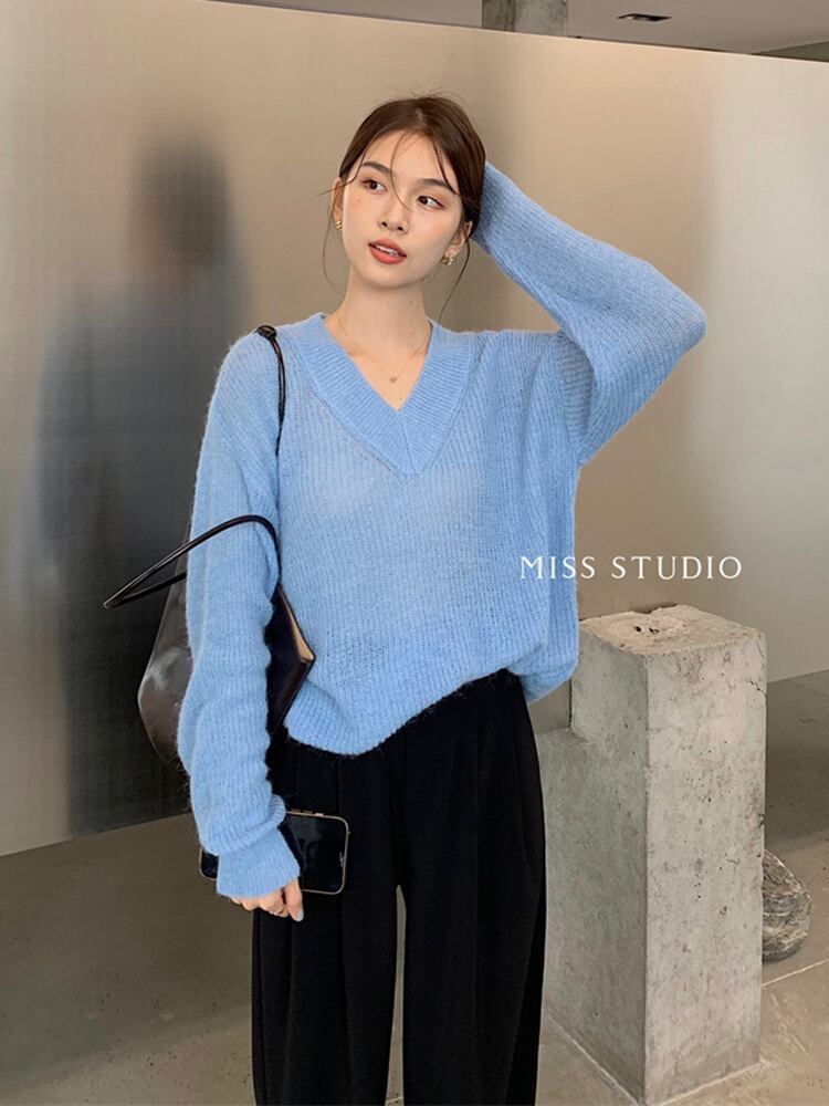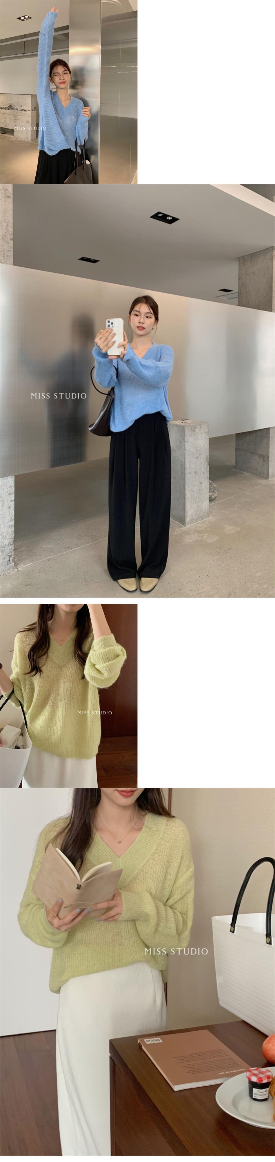 オータムスタイルVネックプルオーバー トップス ウールセーター ロング 秋物 9/19 秋冬 オータム ウインター ナチュラル mi4692620428800
