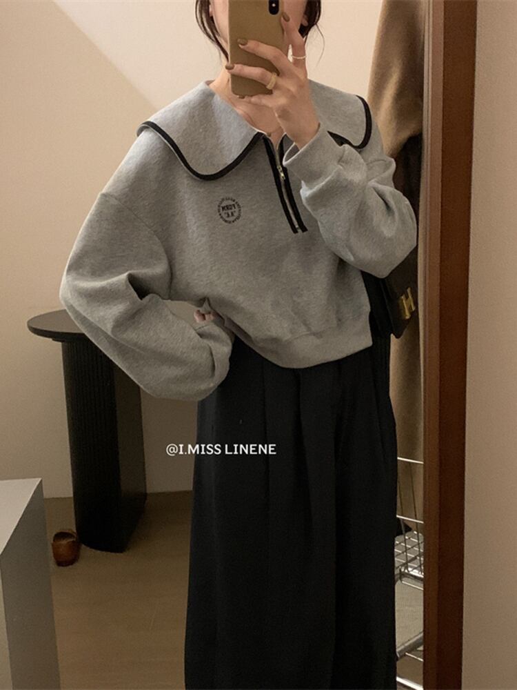 オータムルーズトップス カジュアルカラーセーター ロング 秋物 9/19 秋冬 オータム ウインター ナチュラル mi4665260162880
