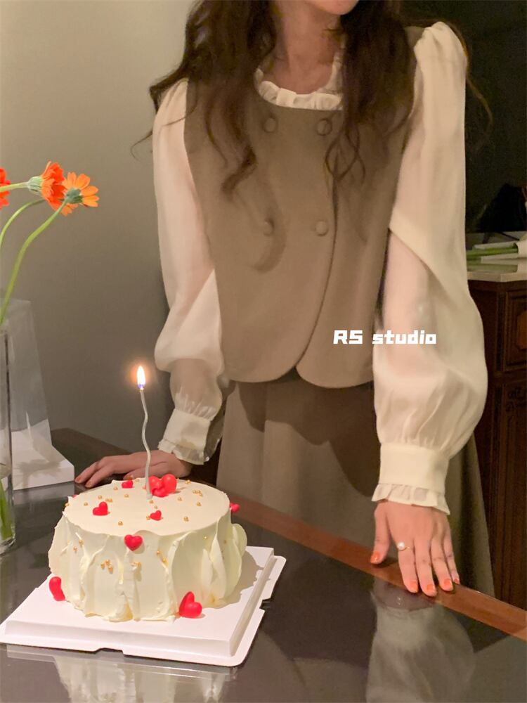オータムラウンドネックシャツ ハイウェストウェストスリムスカート 秋物 Oネック ステッチ 9/19 秋冬 オータム ウインター ナチュラル mi4654888584871