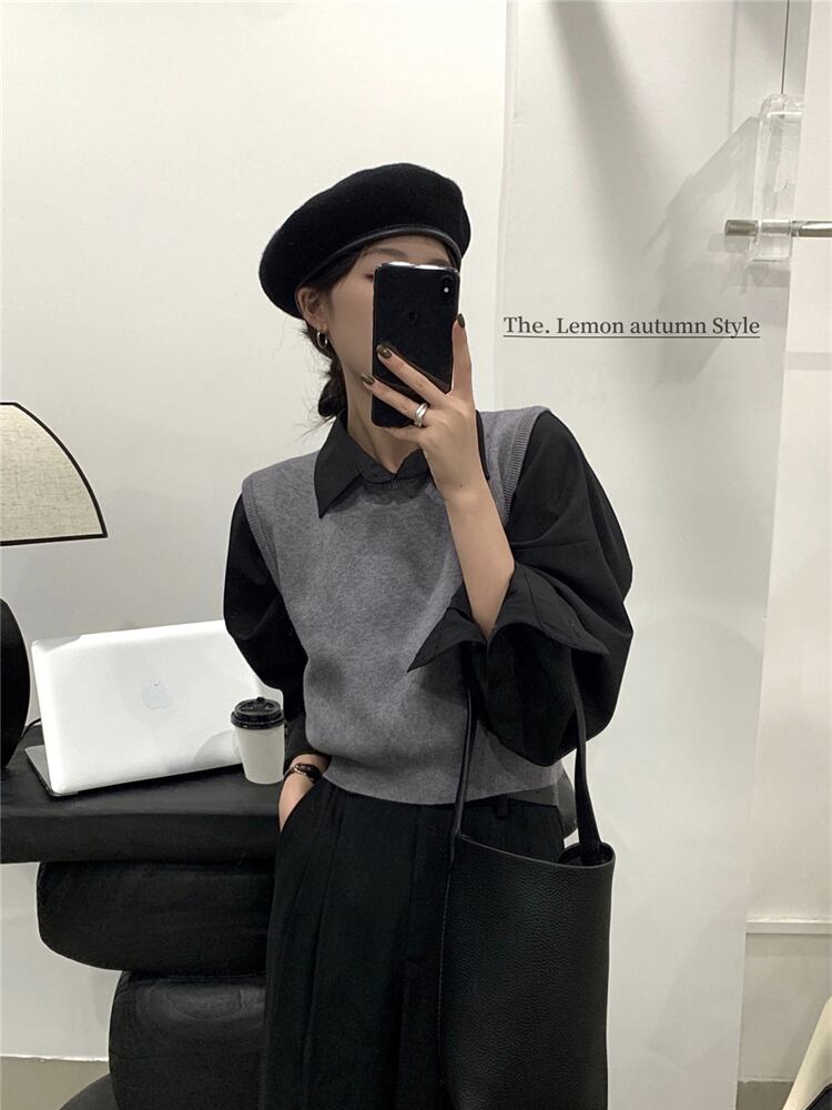 オータムラウンドネックソリッド カラープルオーバー トップス ノースリーブニットレディース 秋物 Oネック ソリッドカラー 9/19 秋冬 オータム ウインター ナチュラル mi4656569690363