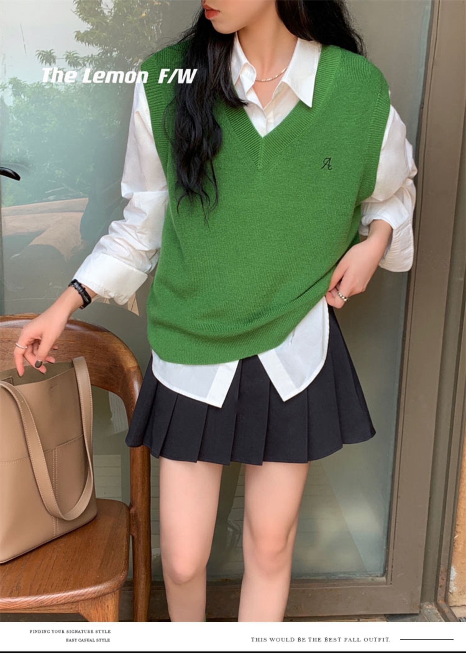 オータムルーズ刺繍Vネックノースリーブソリッド カラーニットレディース 秋物 ソリッドカラー 9/19 秋冬 オータム ウインター ナチュラル mi4697264902878