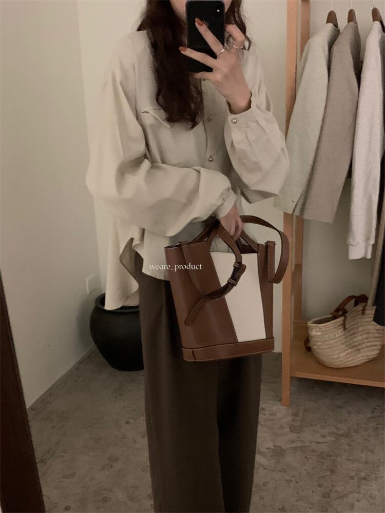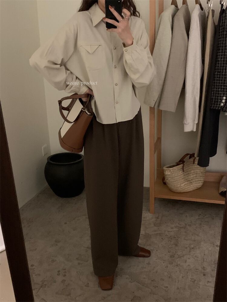 オータムスタンダードルーズシングルポケットアシンメトリーブレストソリッド カラーシャツ ロング レトロ 秋物 ソリッドカラー 9/19 秋冬 オータム ウインター ナチュラル mi4687913197302
