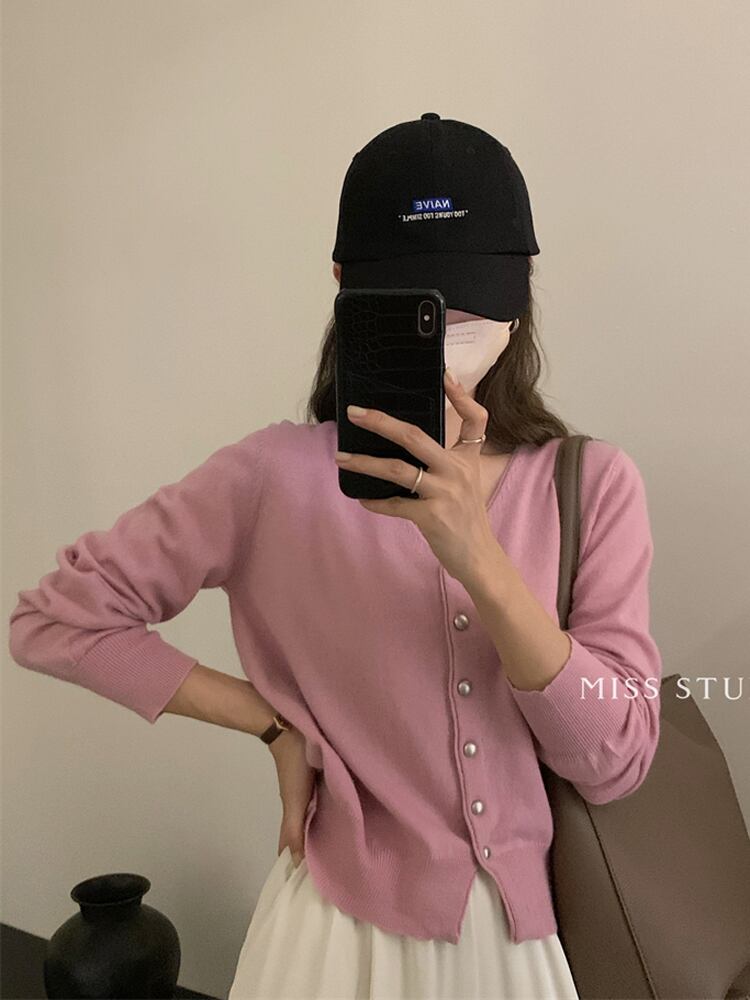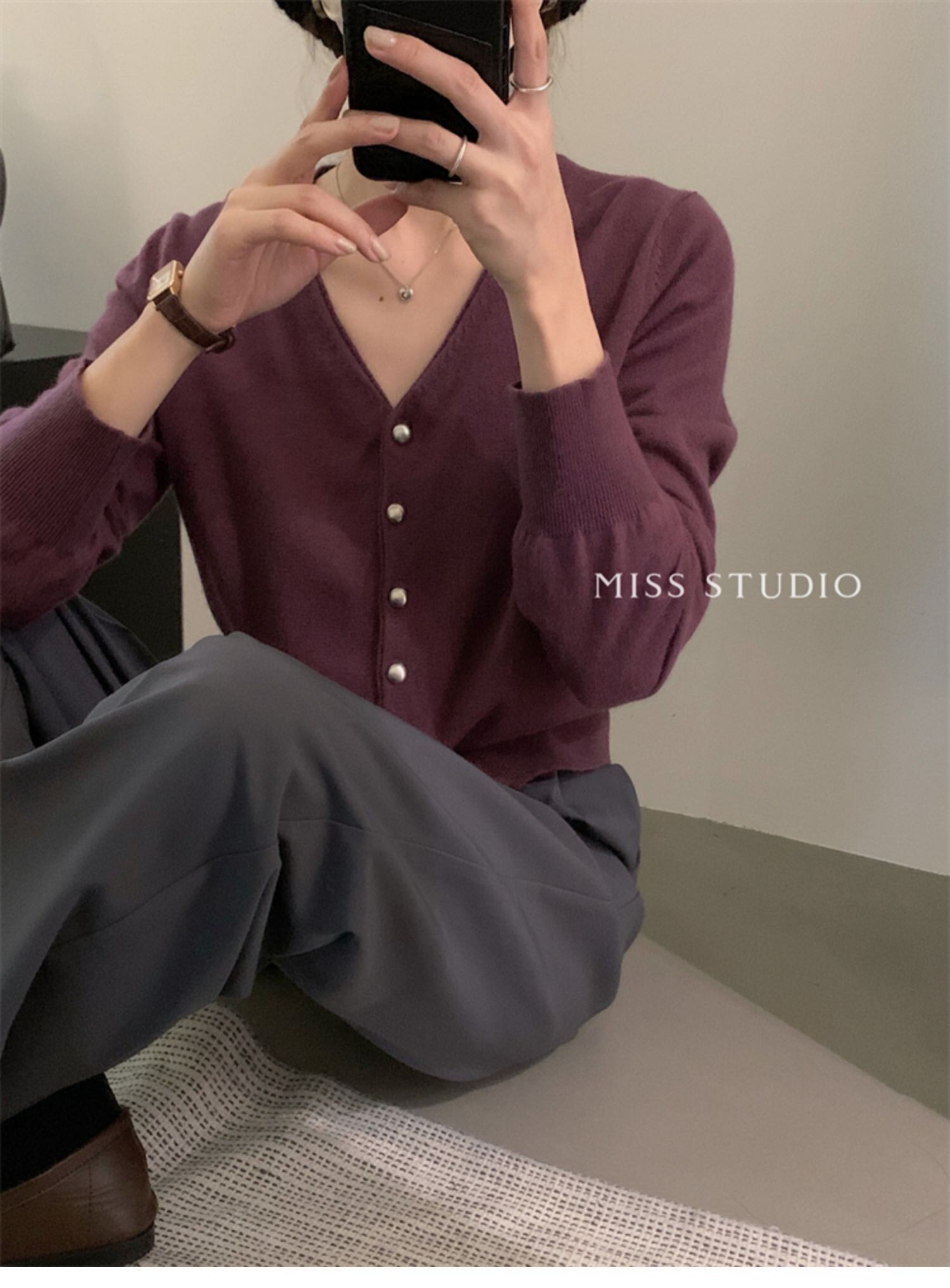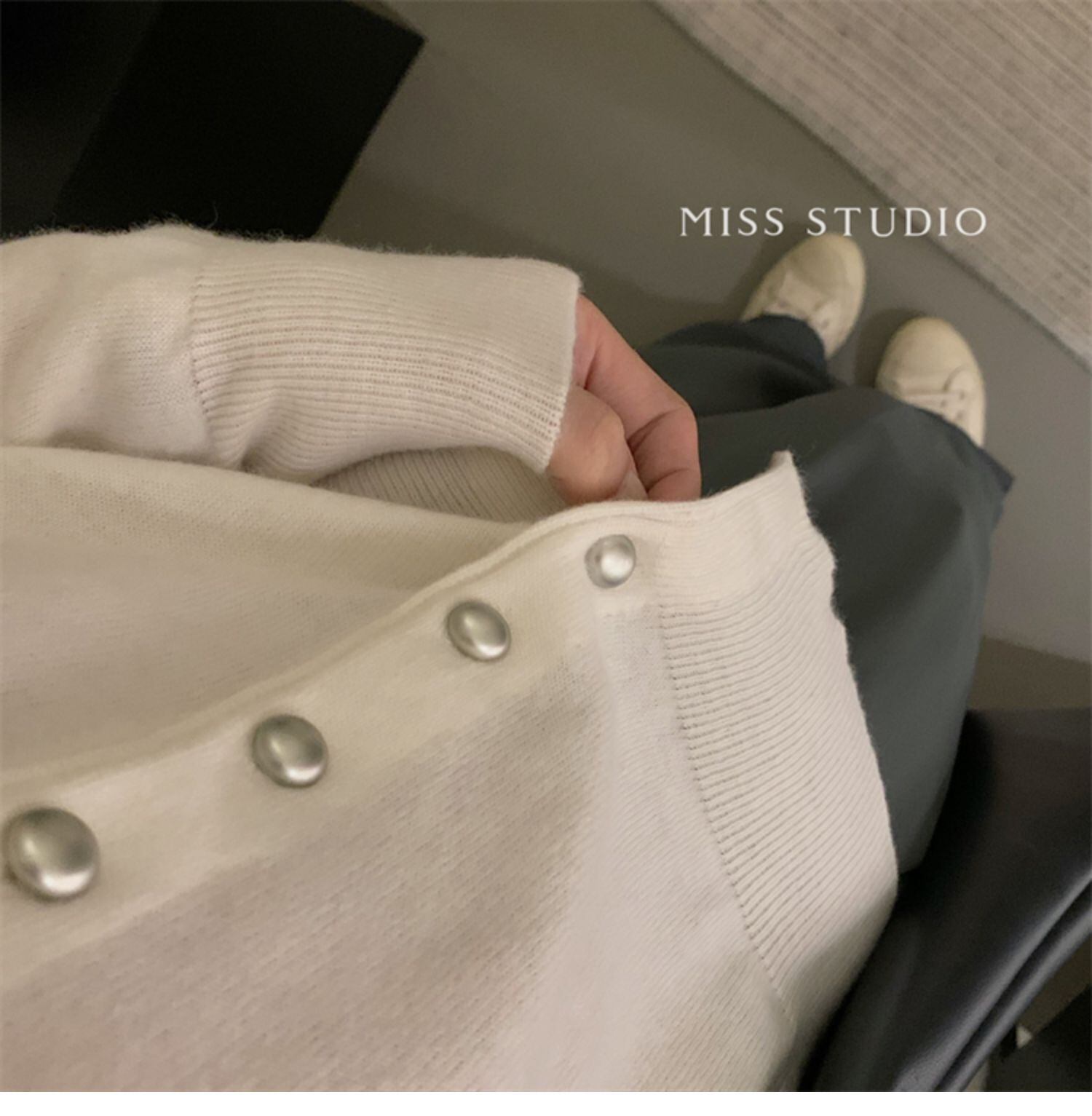 オータムVネックスリムトップス シルバーボタンウールカーディガンニット ロング 秋物 銀 9/19 秋冬 オータム ウインター ナチュラル mi4661541165833
