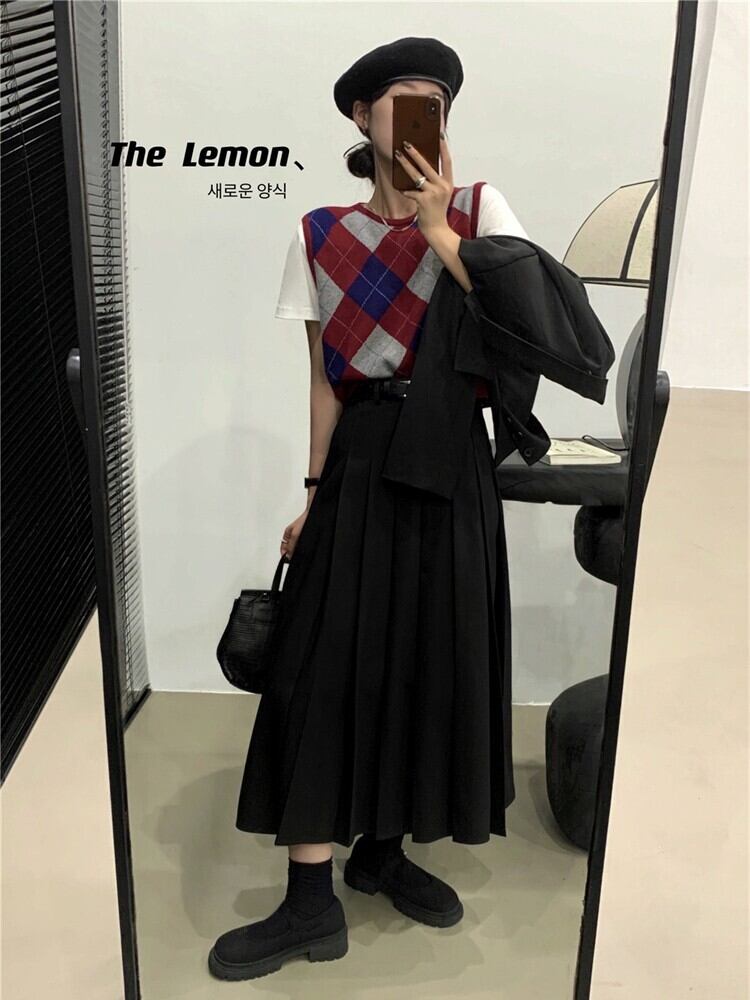 オータムハイウェストAラインスカート レッドプリーツレディース 秋物 9/19 秋冬 オータム ウインター ナチュラル mi4616892187217