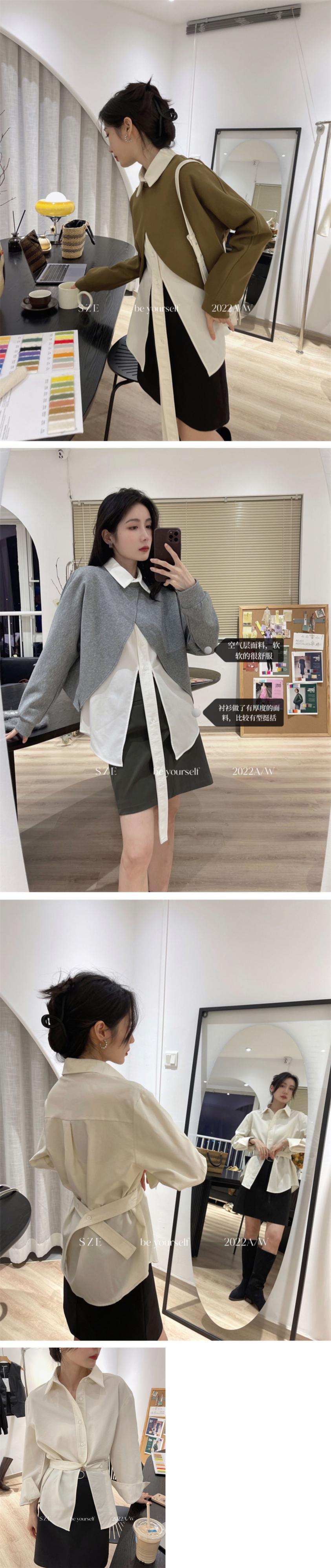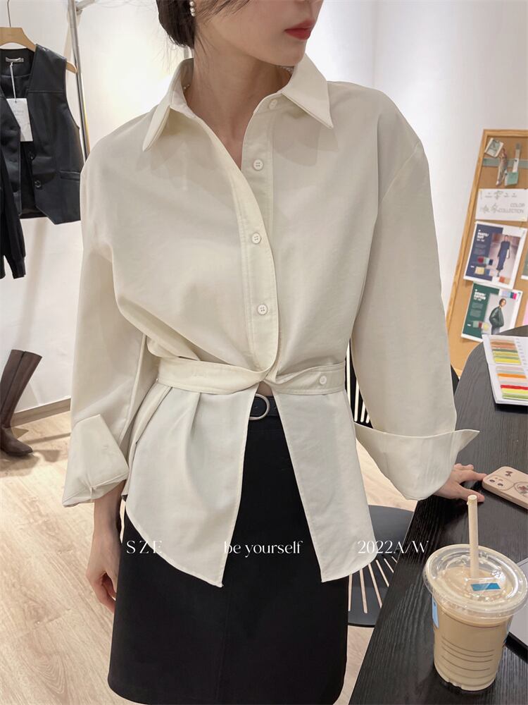 オータムトップス ストラップ 薄手ブルーシャツ ロング 秋物 9/19 秋冬 オータム ウインター ナチュラル mi4692714675031