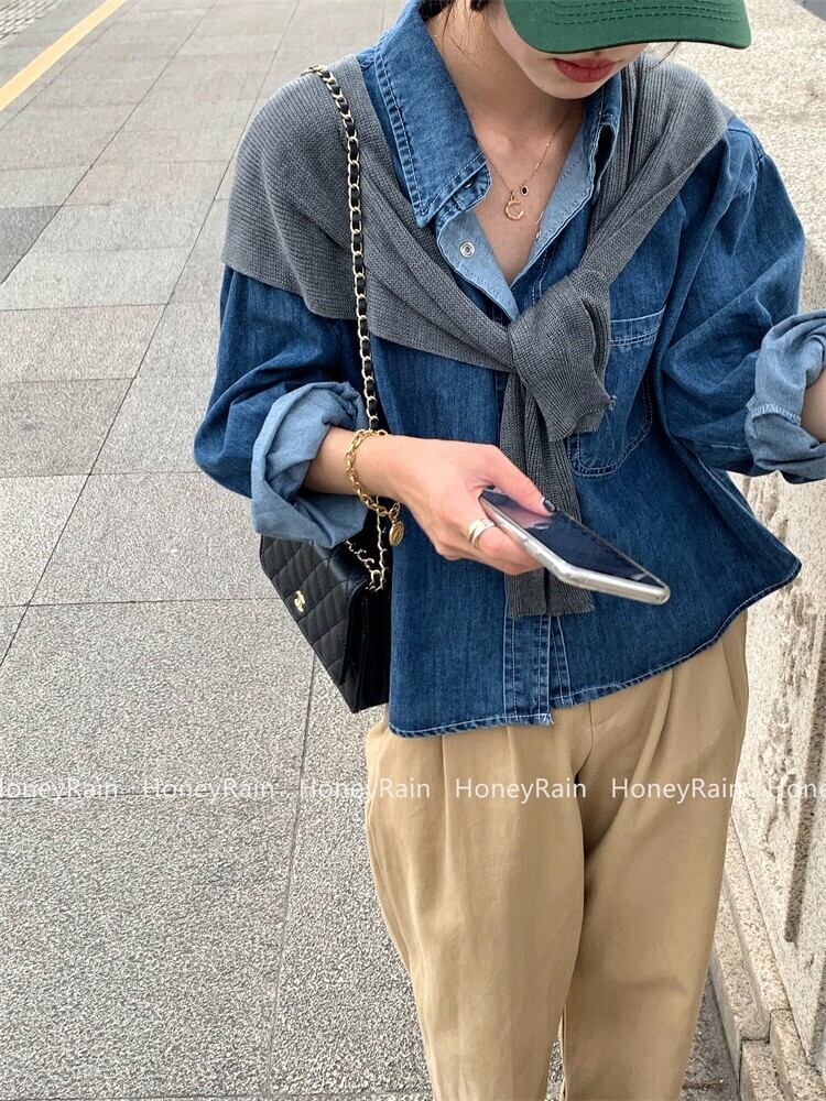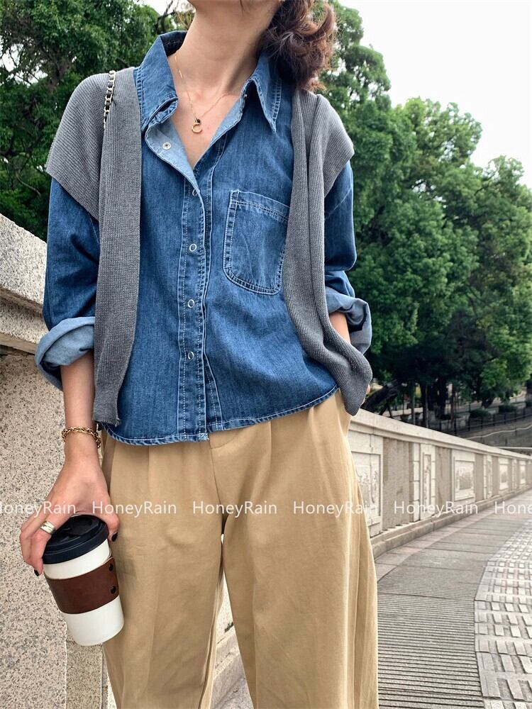 オータムソリッド カラーニットブルーシャツ ロング 秋物 ソリッドカラー 9/19 秋冬 オータム ウインター ナチュラル mi4623964413615