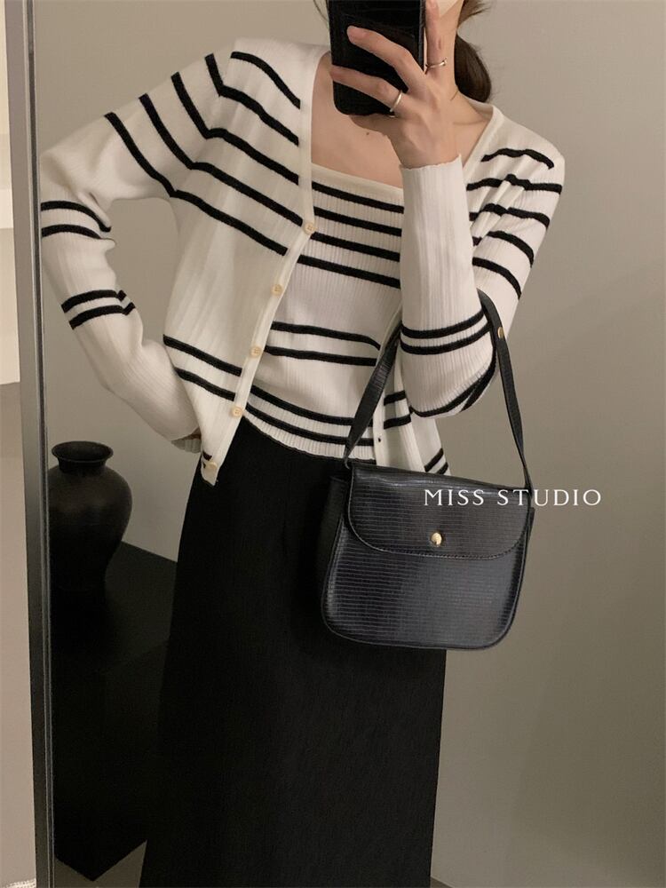 オータムウールストライプカーディガンスリムニット ロング 秋物 9/19 秋冬 オータム ウインター ナチュラル mi4681464784940