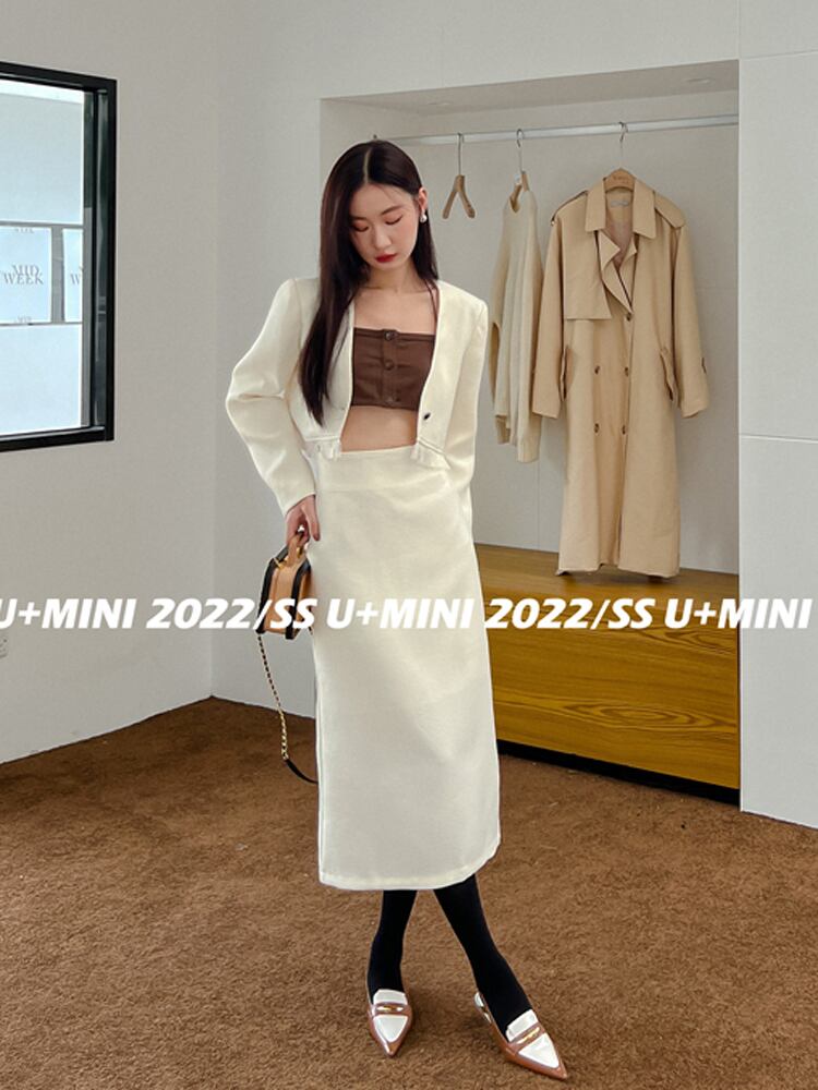 オータムVネックホワイトトップス ハイウェストスカート ロング 秋物 9/19 秋冬 オータム ウインター ナチュラル mi4620271359294