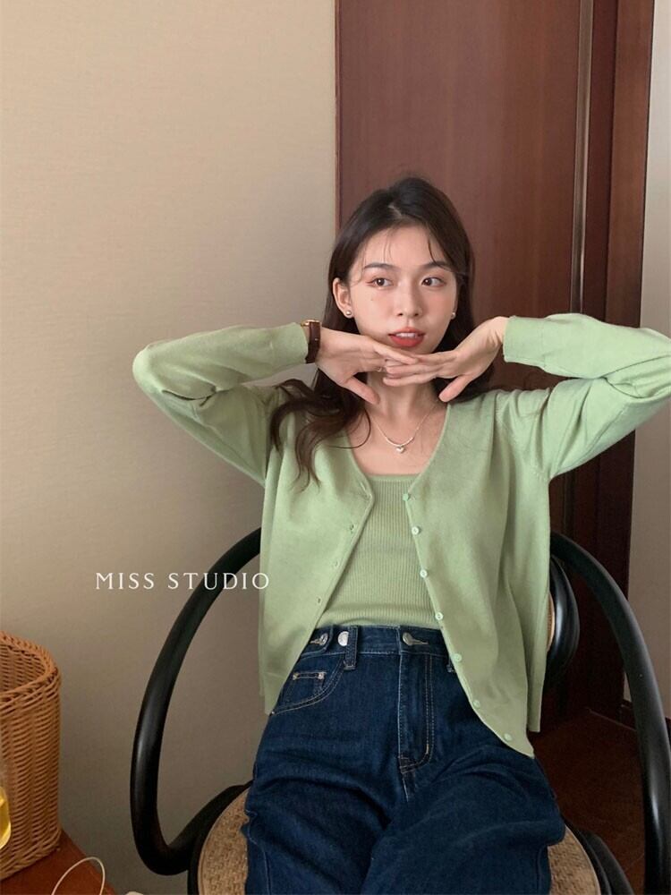 オータム薄手ソリッド カラーカーディガンスリムニット ロング 秋物 ソリッドカラー 9/19 秋冬 オータム ウインター ナチュラル mi4660038627522