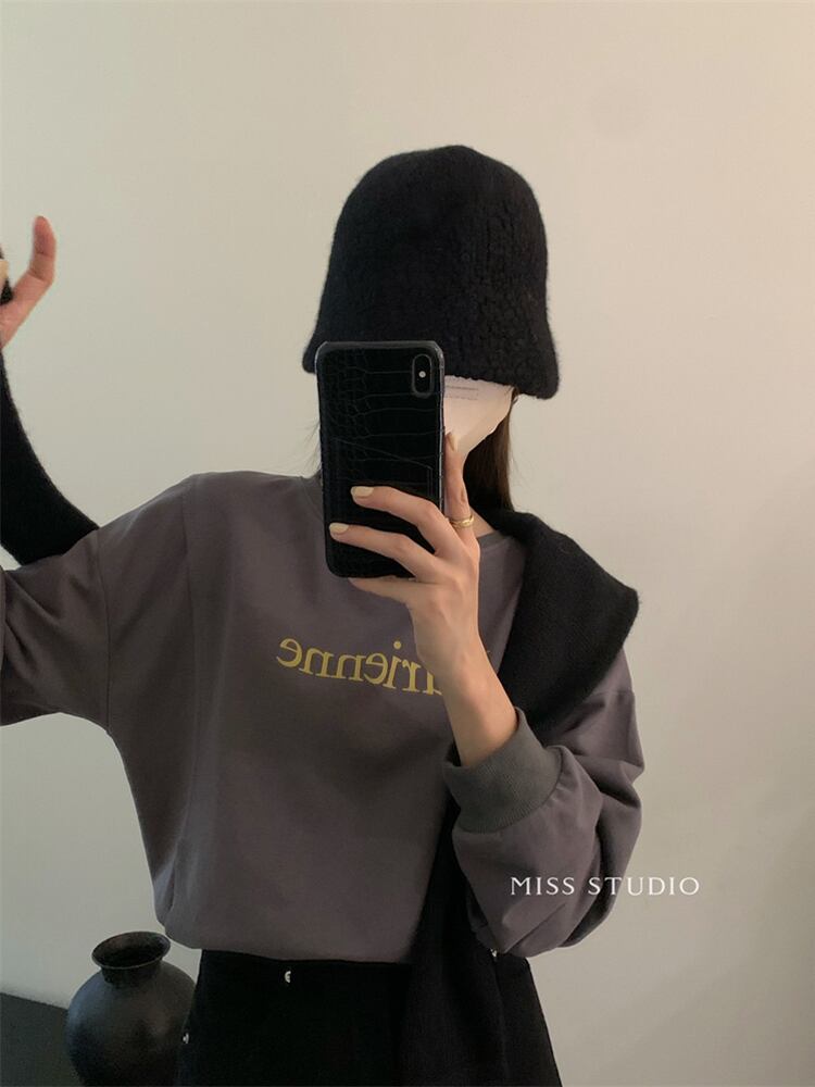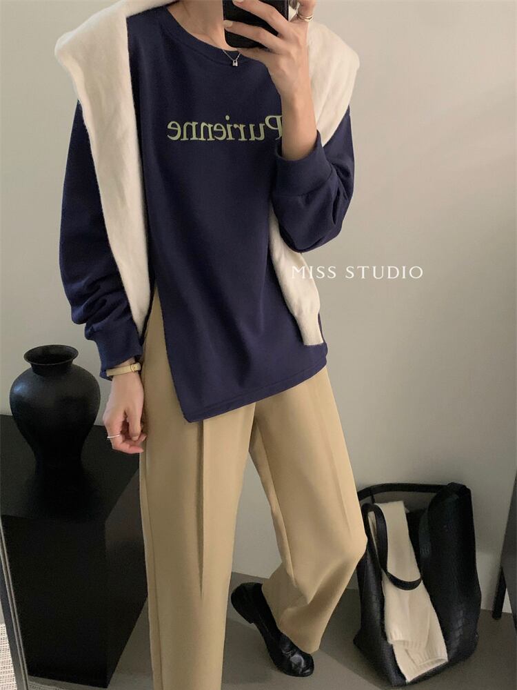 スタイルプルオーバー トップス プリント柄ラウンドネックルーズサイドスリットセーター レディース ロング Oネック 9/19 秋冬 オータム ウインター ナチュラル mi4660670350375