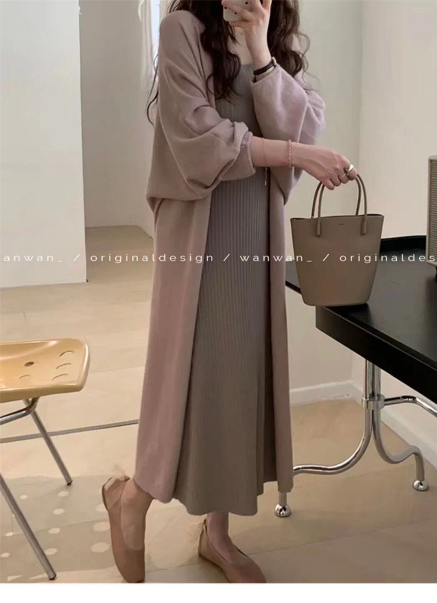 オータムラウンドネックソリッド カラースリムニットドレス レディース エレガント 秋物 Oネック ソリッドカラー 9/19 秋冬 オータム ウインター ナチュラル mi4678096957301
