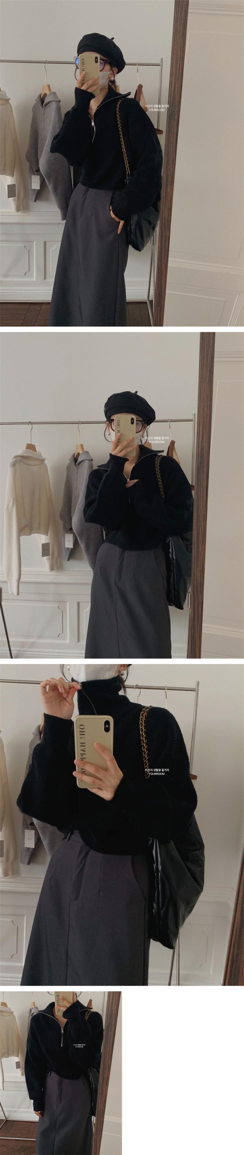 オータムルーズホワイトトップス ジッパーセーター ロング 秋物 9/19 秋冬 オータム ウインター ナチュラル mi4625323236574