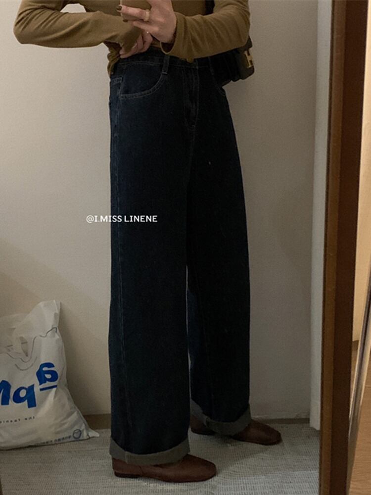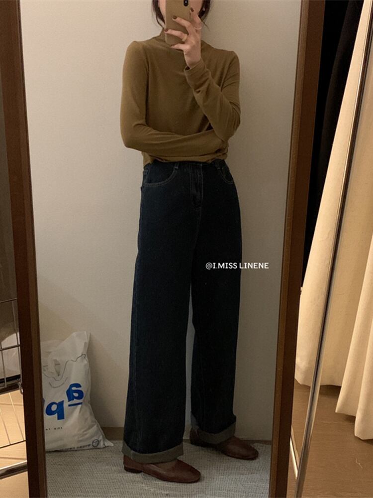 オータムスタンダードハイウェストカジュアルパンツ ジーンズ レトロ 秋物 9/19 秋冬 オータム ウインター ナチュラル mi4670802273108