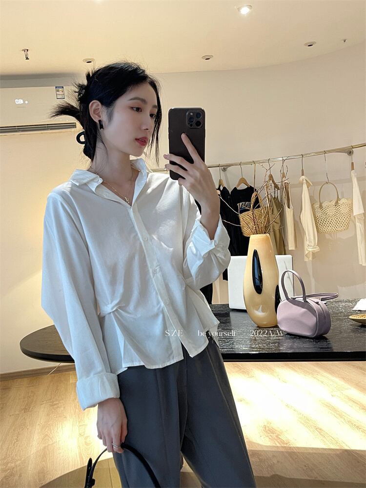 オータムルーズトップス プリーツホワイトシャツ ロング 秋物 9/19 秋冬 オータム ウインター ナチュラル mi4657413454161