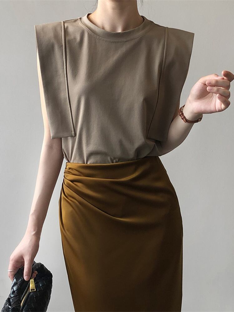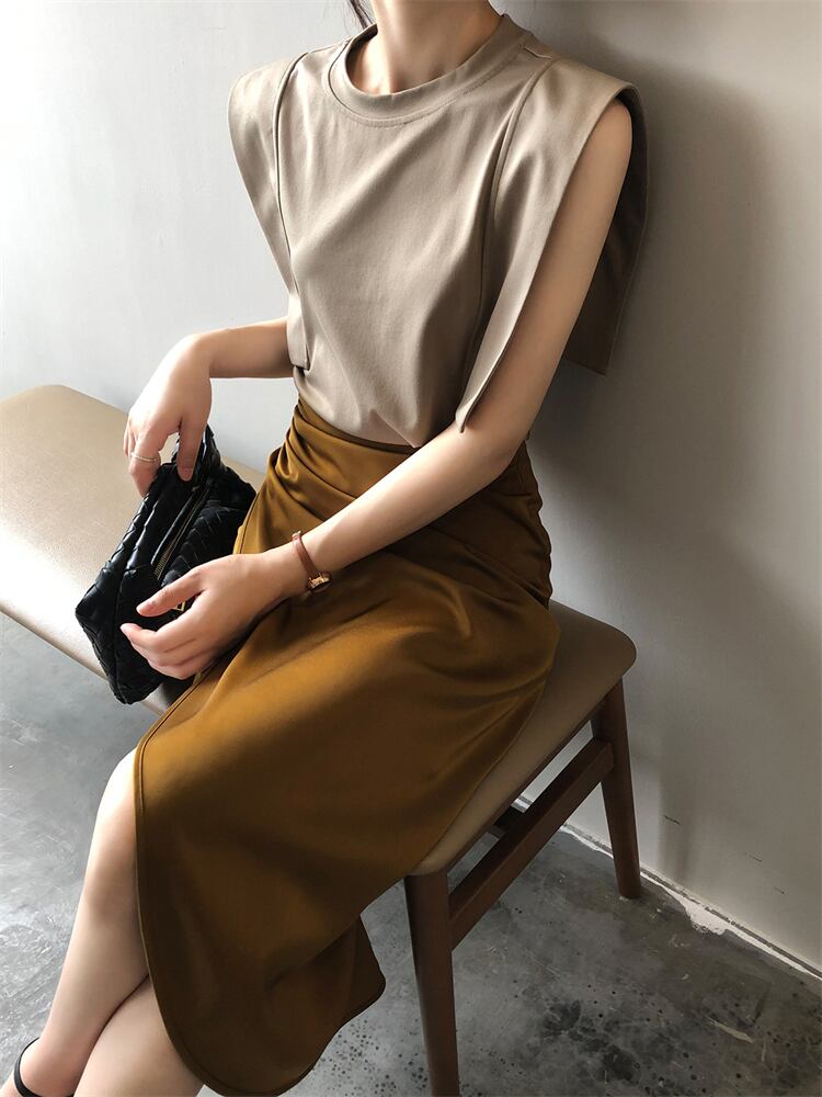 サマースタンダードラウンドネックプリーツAラインスカート レトロ 夏物 Oネック 9/19 秋冬 オータム ウインター ナチュラル mi4680419649862