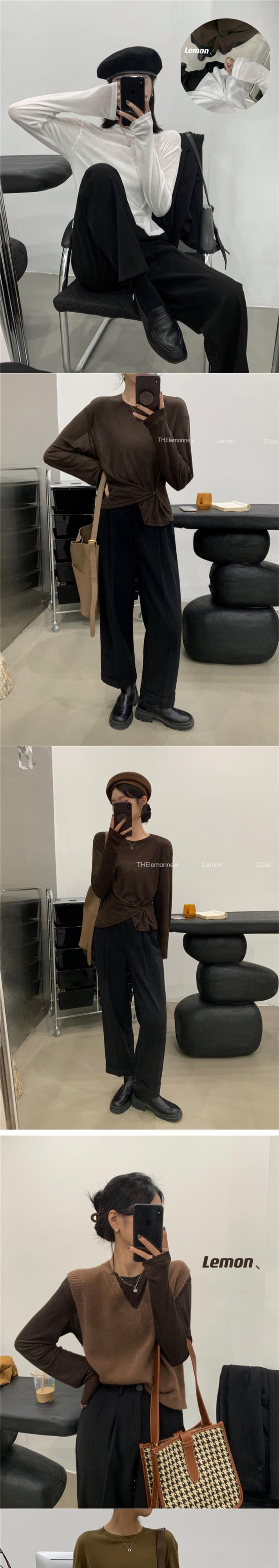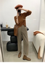 オータムラウンドネックソリッド カラープルオーバー シャツ サイドボタントップス ロング 秋物 Oネック ソリッドカラー 9/19 秋冬 オータム ウインター ナチュラル mi4648030277547