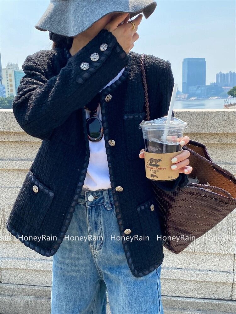 オータムウィンターラウンドネックブラック薄手ツィードコート ロング 秋物 冬物 Oネック 9/19 秋冬 オータム ウインター ナチュラル mi4680777352514