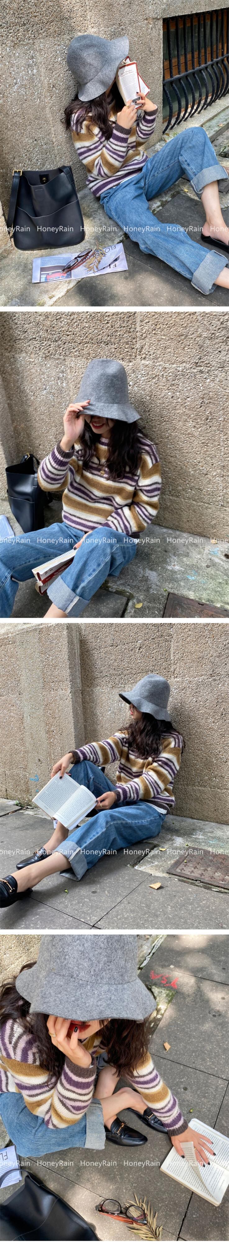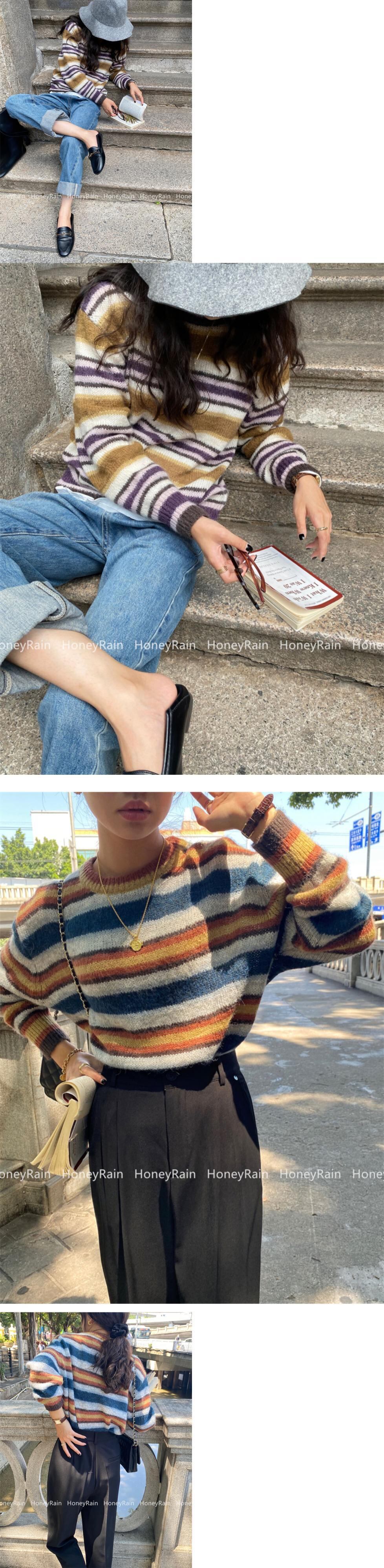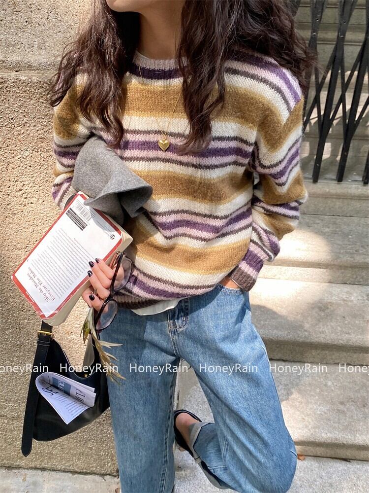 オータムスタンダードプルオーバー トップス カラールーズストライプセーター ロング レトロ 秋物 9/19 秋冬 オータム ウインター ナチュラル mi4674923985060