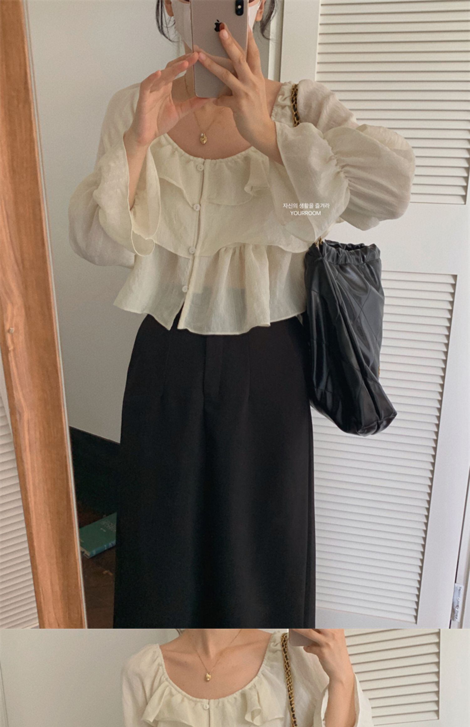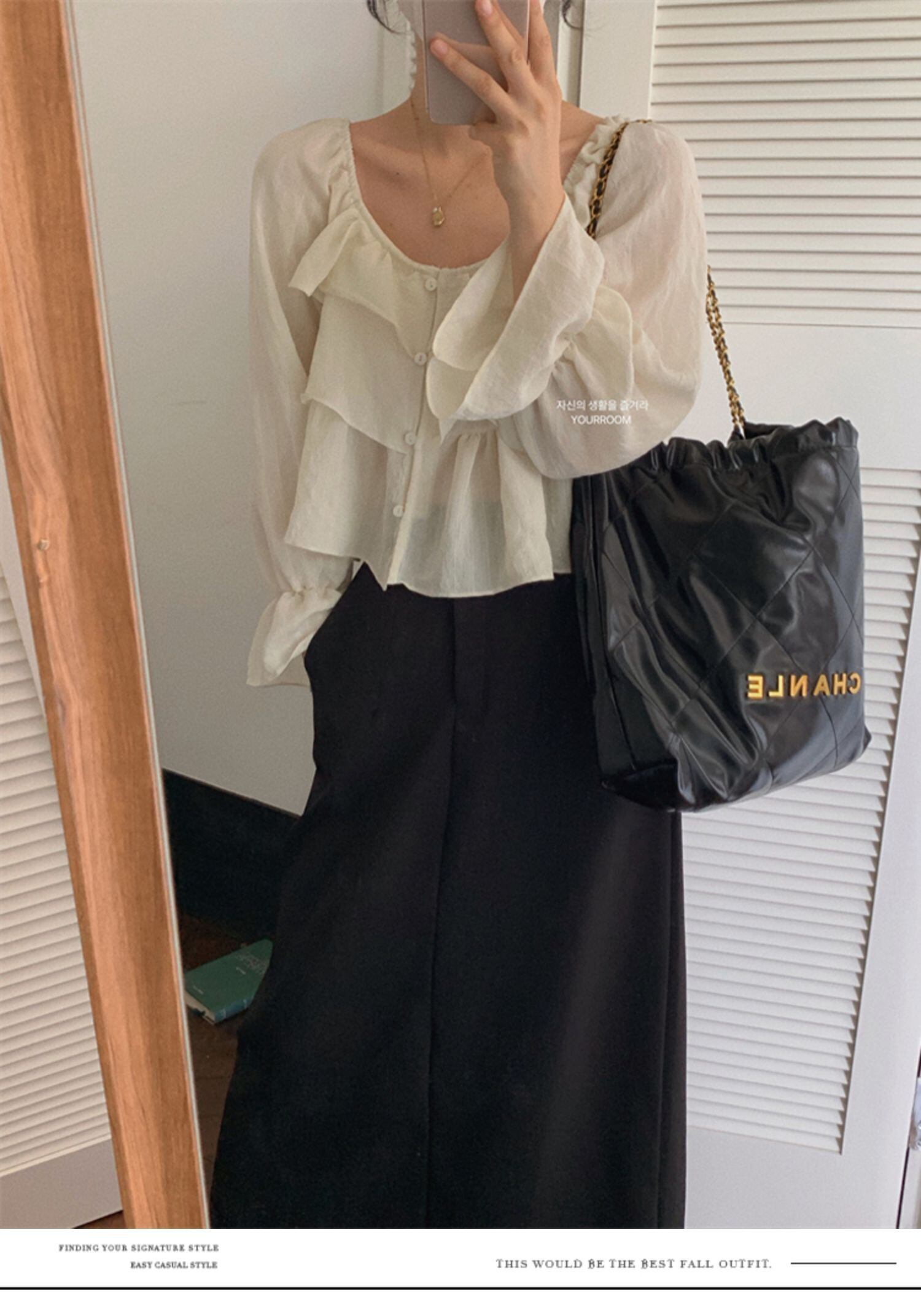 ソリッド カラールーズ薄手スリーブトップス レッド ソリッドカラー 9/19 秋冬 オータム ウインター ナチュラル mi461157537324
