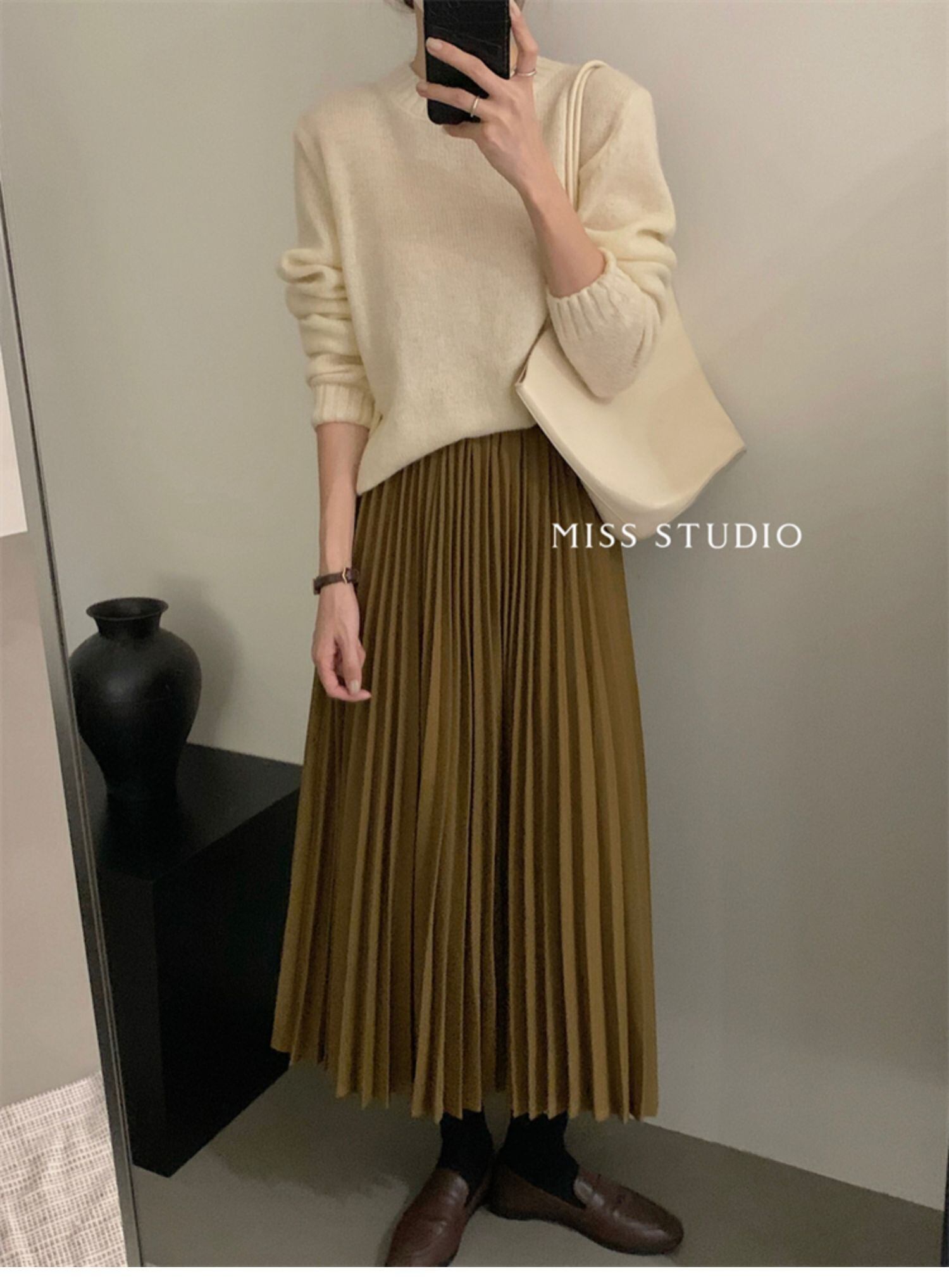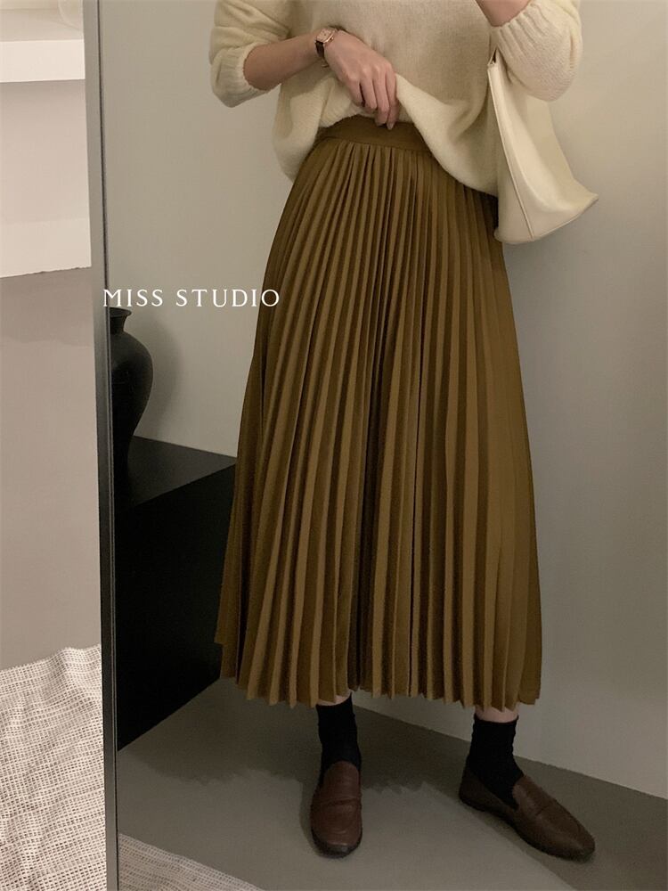 オータムハイウェストウェストミディスカート プリーツ 秋物 9/19 秋冬 オータム ウインター ナチュラル mi4686786247238