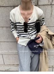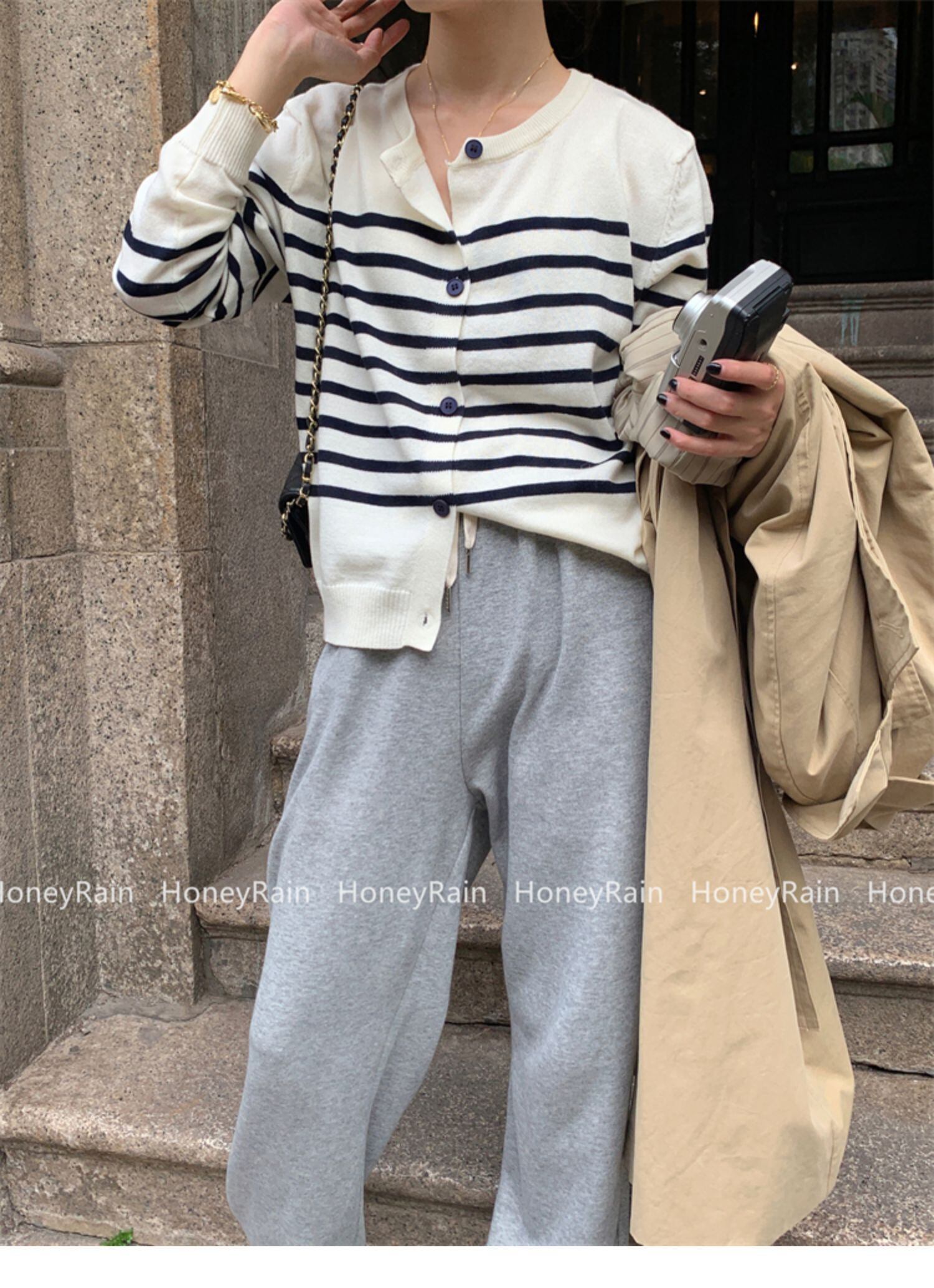 オータム薄手ベーシックスタイルストライプセーター コットン 秋物 9/19 秋冬 オータム ウインター ナチュラル mi4649759989787