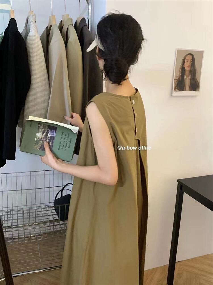 サマースタンダードルーズスカート バックボタンドレス レディース レトロ 夏物 9/19 秋冬 オータム ウインター ナチュラル mi4647130953148