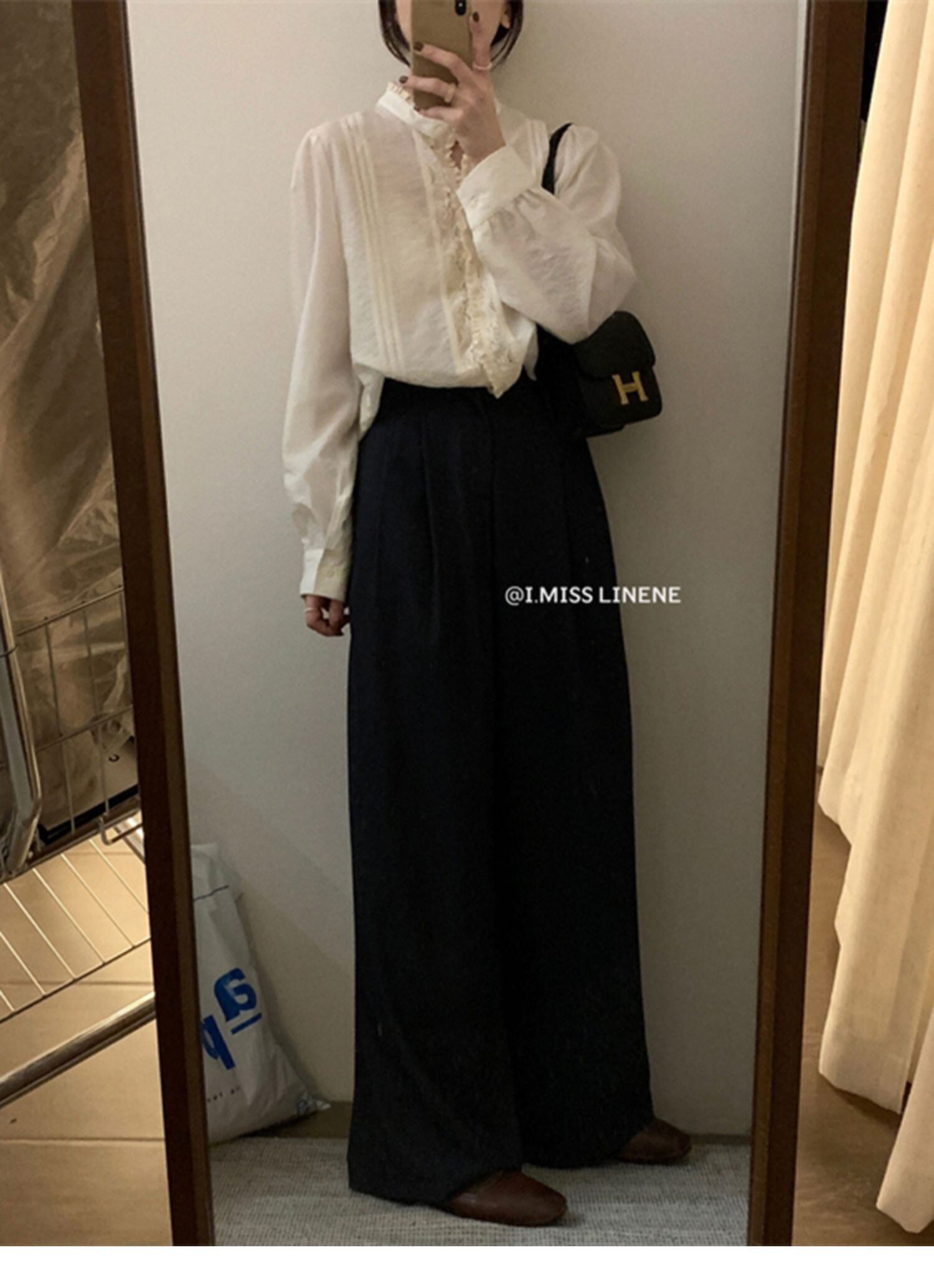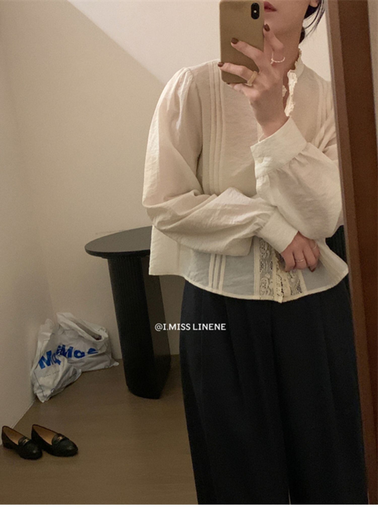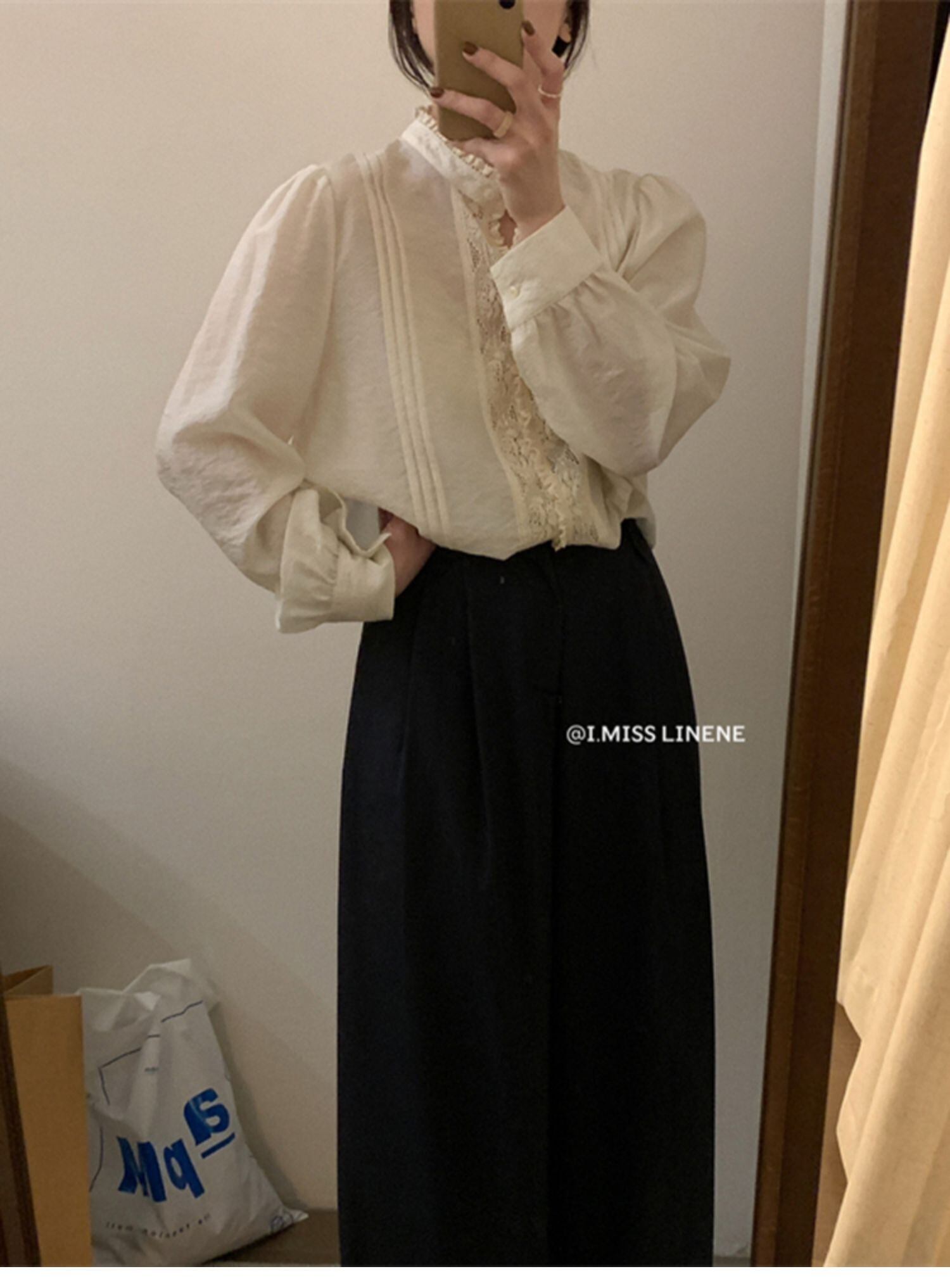 オータムトップス ラウンドネックレースシャツ ロング 秋物 Oネック 9/19 秋冬 オータム ウインター ナチュラル mi4617216115042