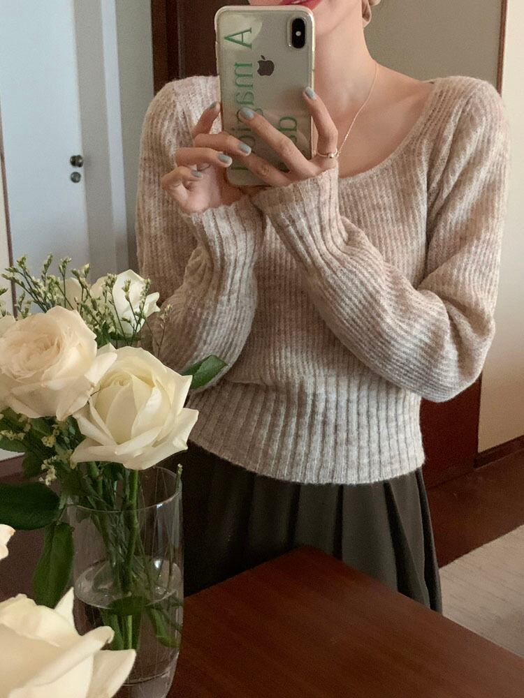 オータムスクーププルオーバー トップス カラーセーター ロング 秋物 9/19 秋冬 オータム ウインター ナチュラル mi4669519678292