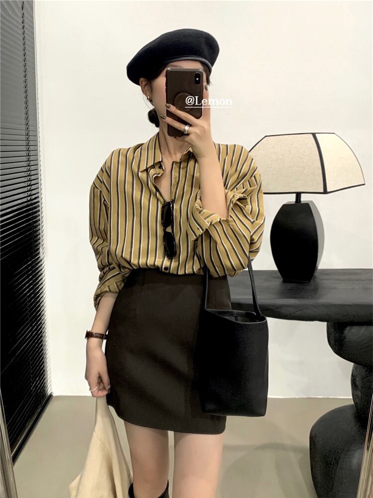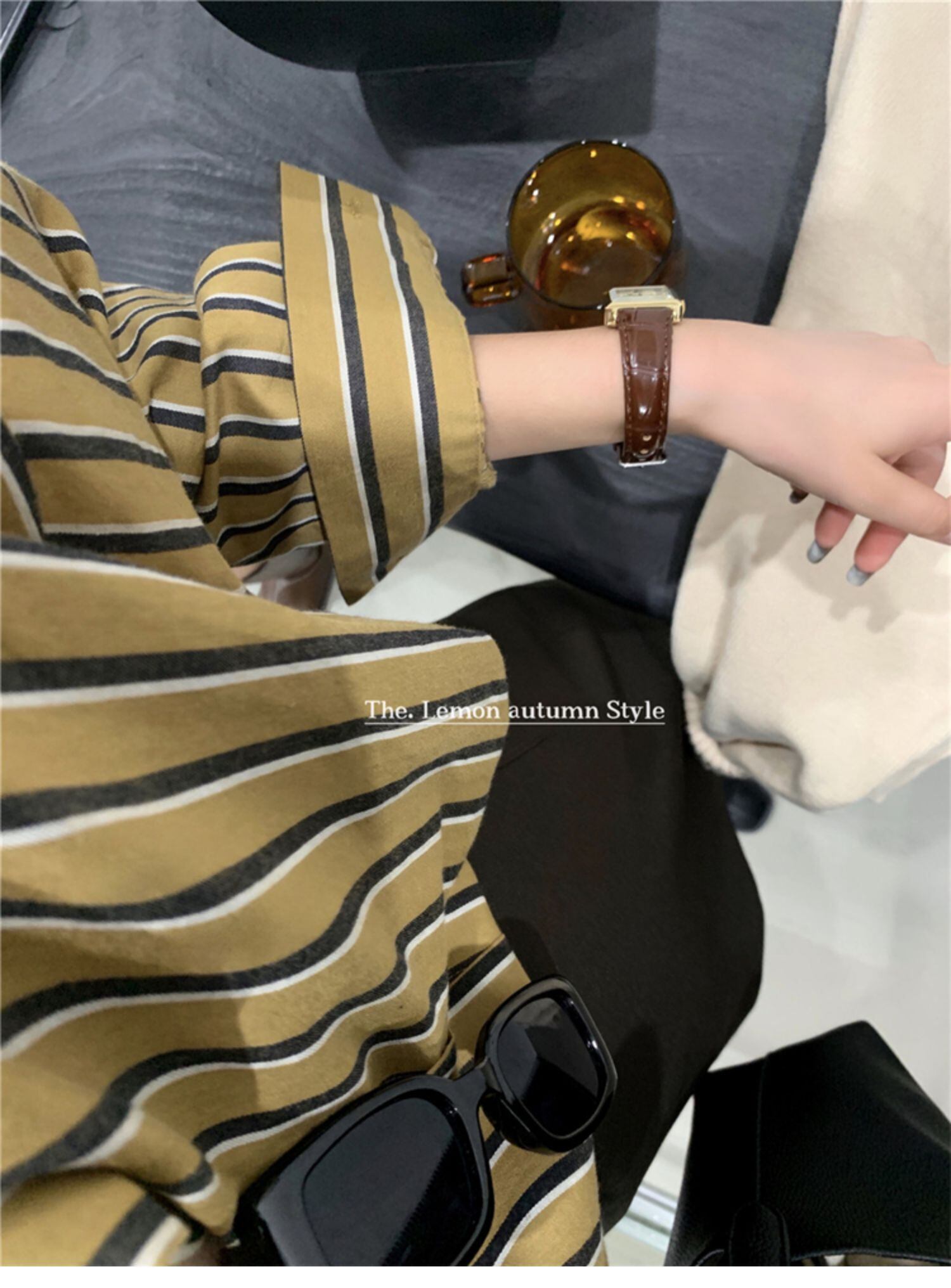 オータムスタンダードルーズストライプシャツ ロング レトロ 秋物 9/19 秋冬 オータム ウインター ナチュラル mi4661673625789