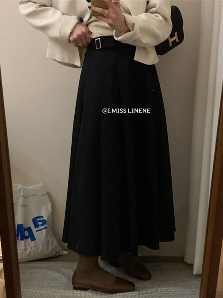 オータムハイウェストウェストブラックスリムプリーツスカート Aライン 秋物 アジャスタブル 9/19 秋冬 オータム ウインター ナチュラル mi4651434507944