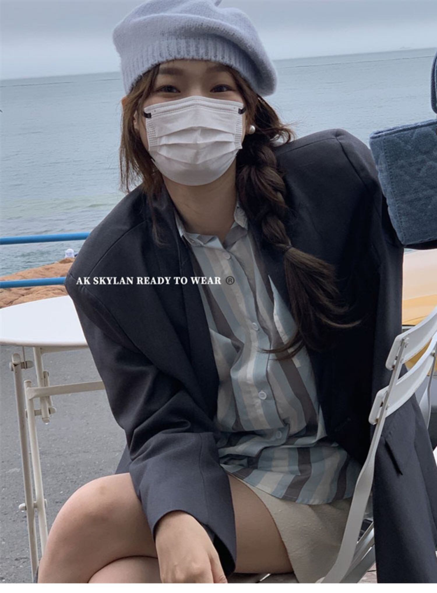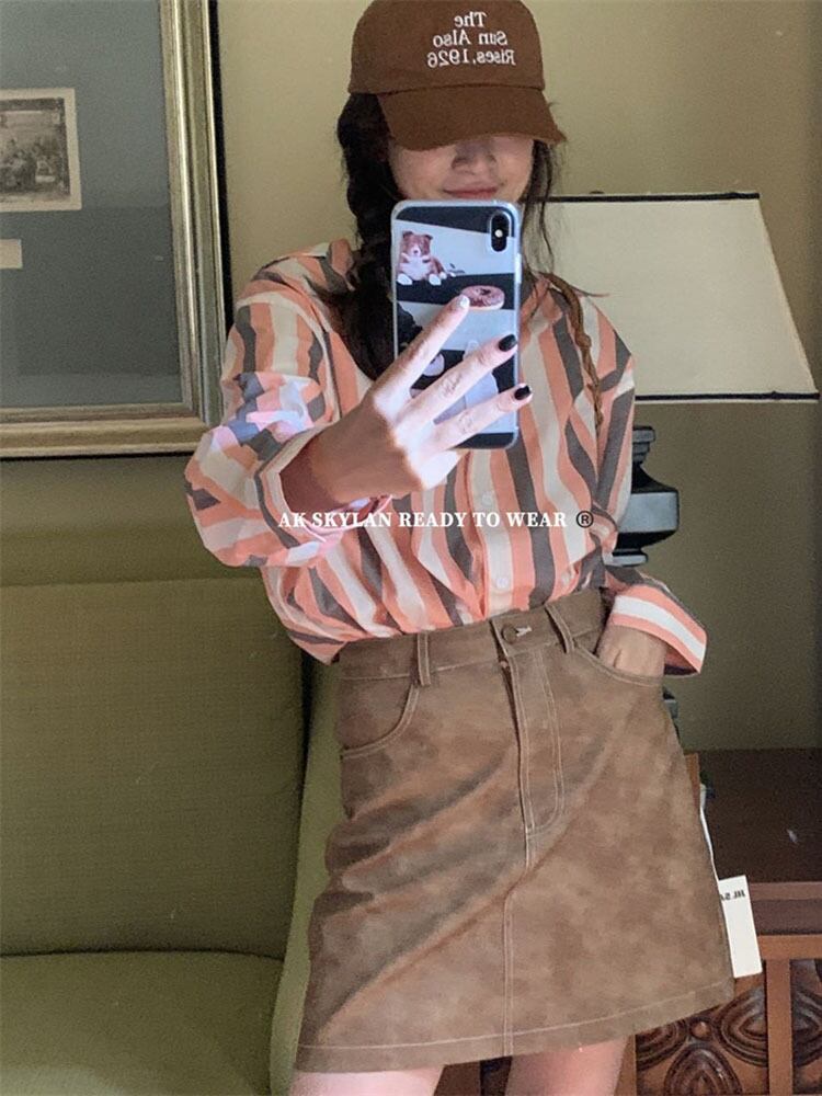 オータムルーズトップス カラーストライプシャツ ロング 秋物 9/19 秋冬 オータム ウインター ナチュラル mi4622690602059